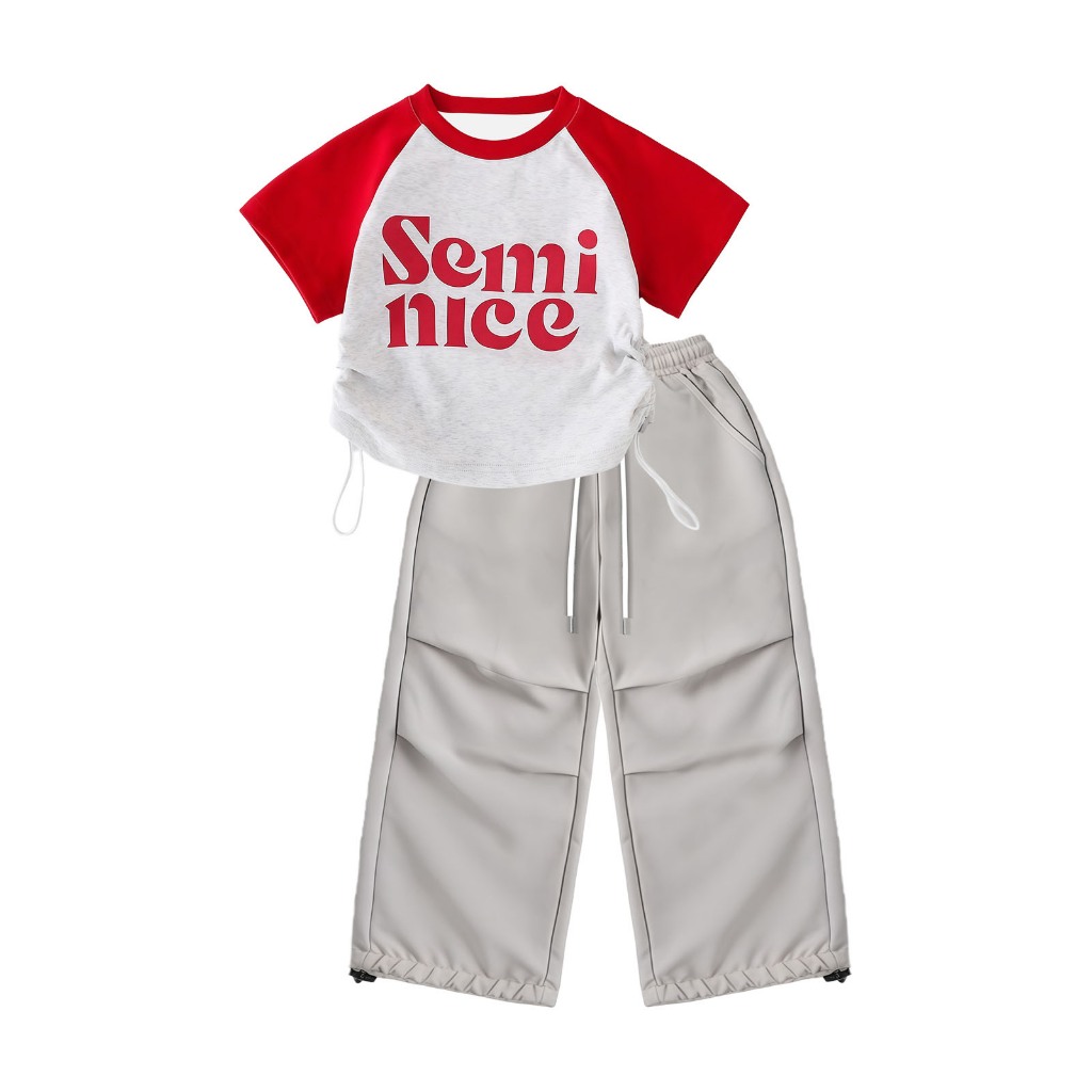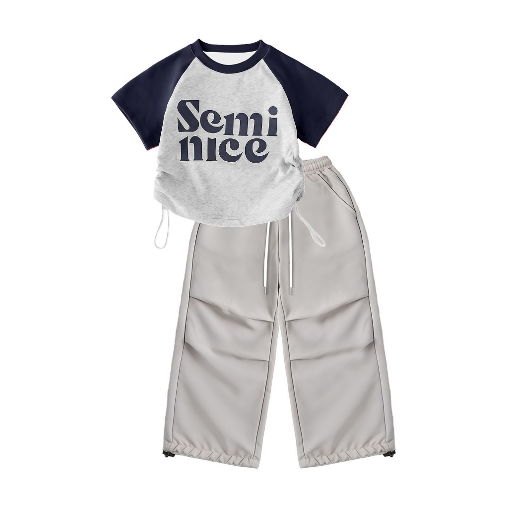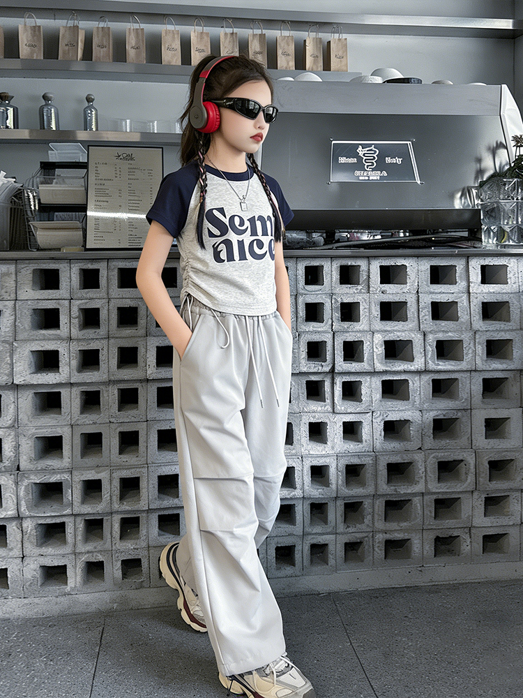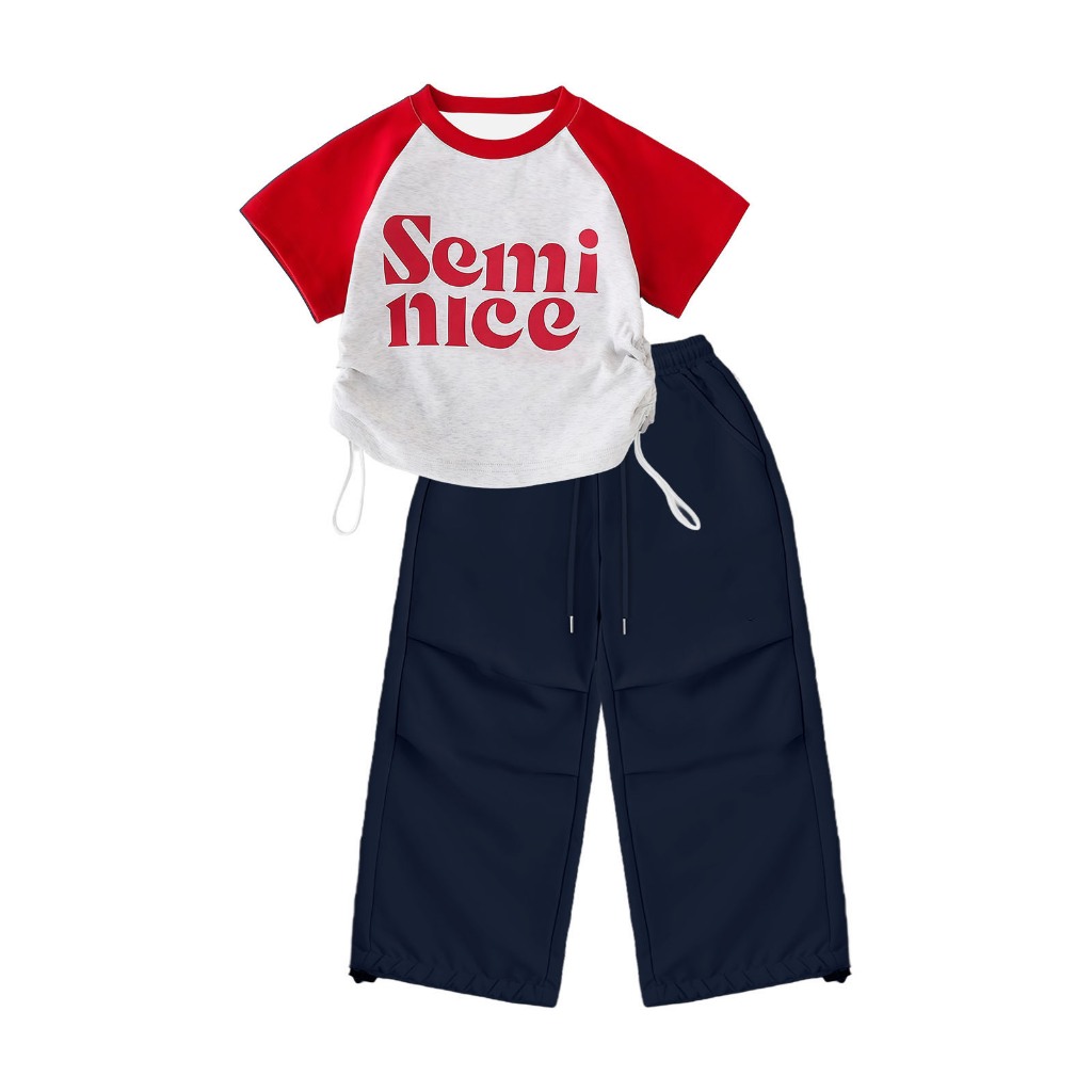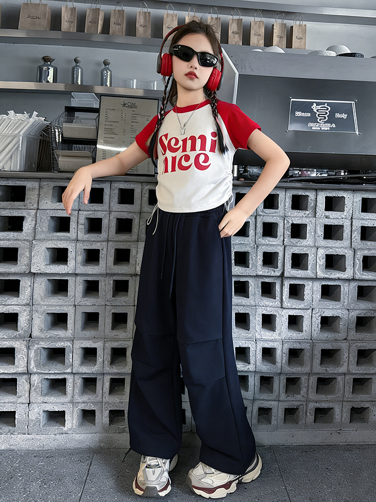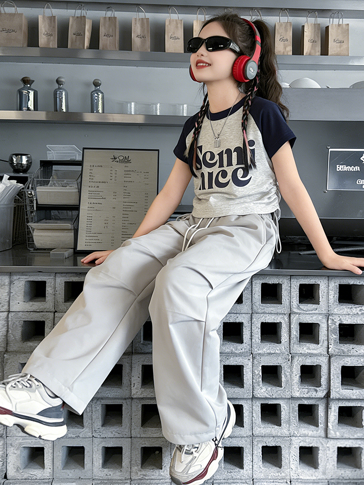 2-15 ปี ชุดเชทเด็กผู้หญิง เสื้อ+กางเกง ดเชทเด็ก2ชิ้น สไตล์เกาหลี เสื้อยืดเด็กผู้หญิง กางเกงขากว้าง แฟชั่น