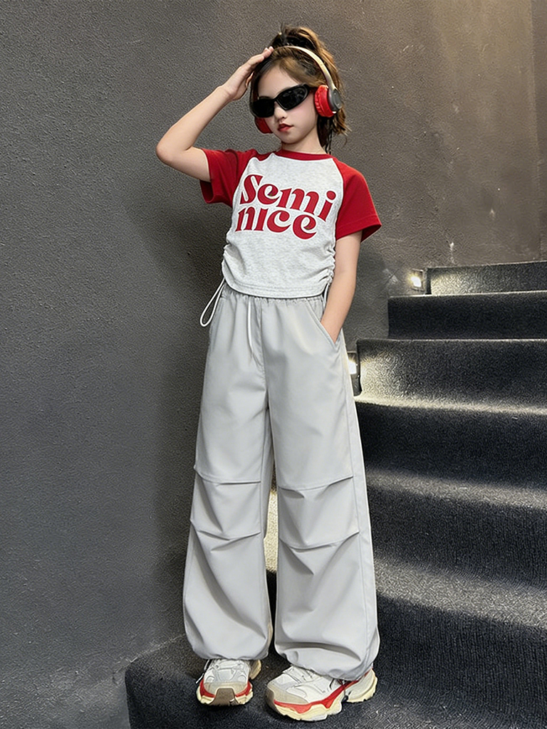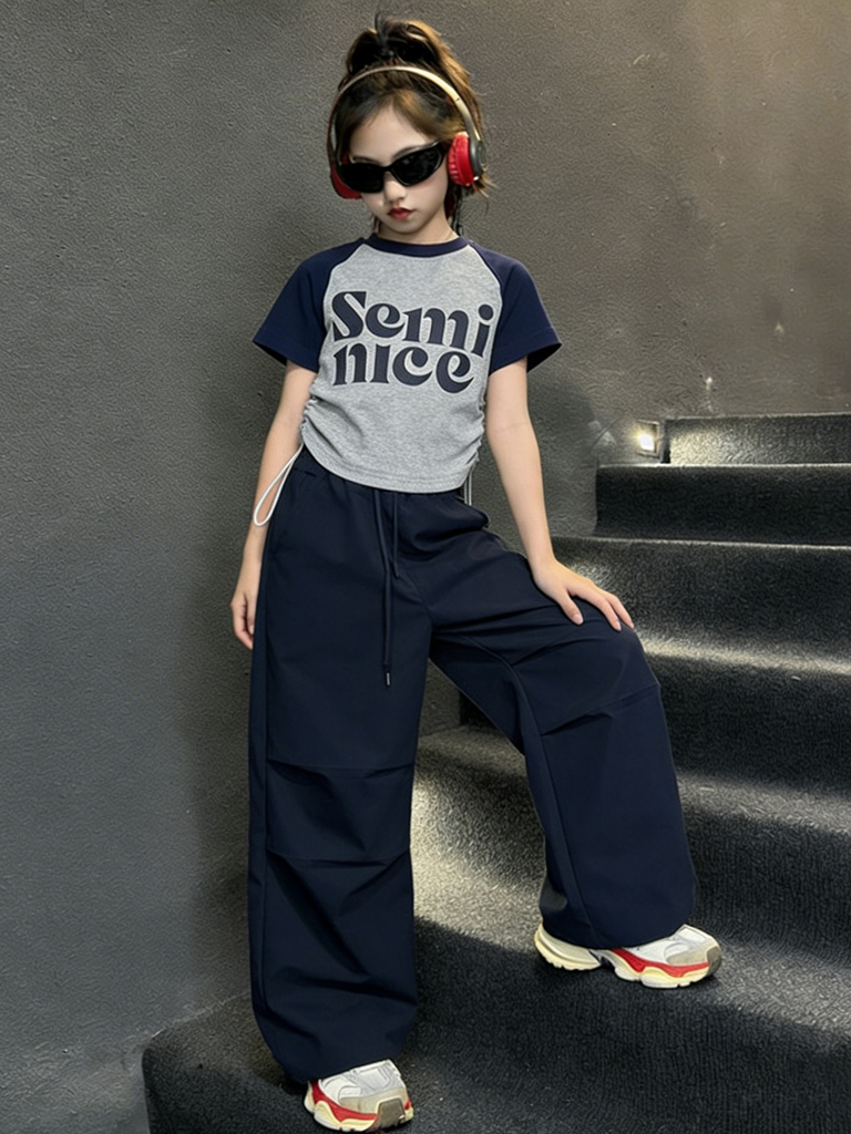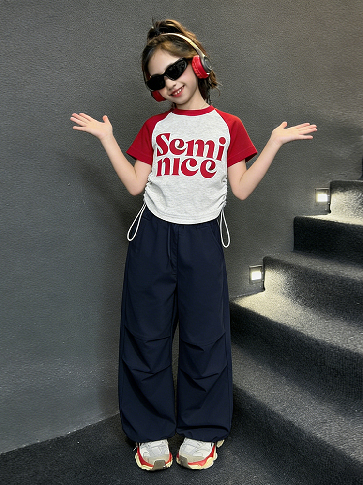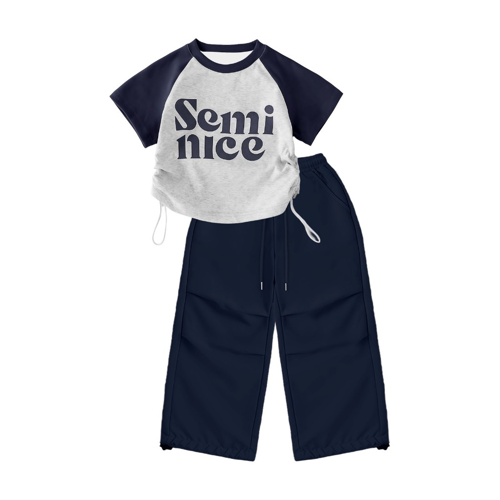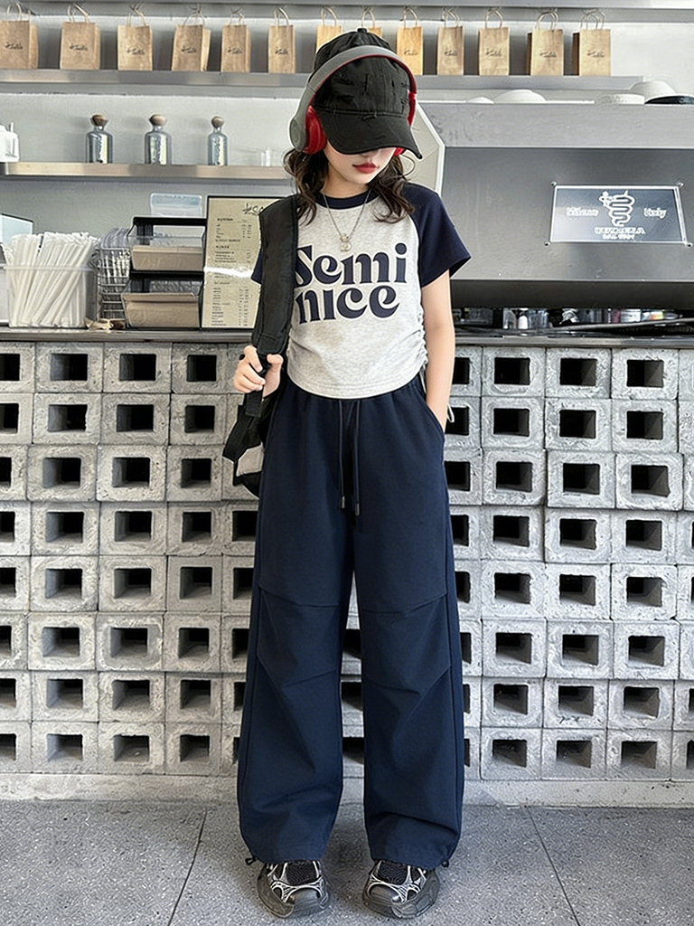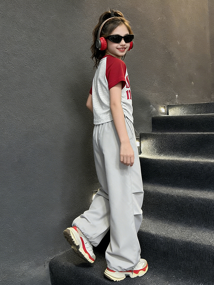 2-15 ปี ชุดเชทเด็กผู้หญิง เสื้อ+กางเกง ดเชทเด็ก2ชิ้น สไตล์เกาหลี เสื้อยืดเด็กผู้หญิง กางเกงขากว้าง แฟชั่น