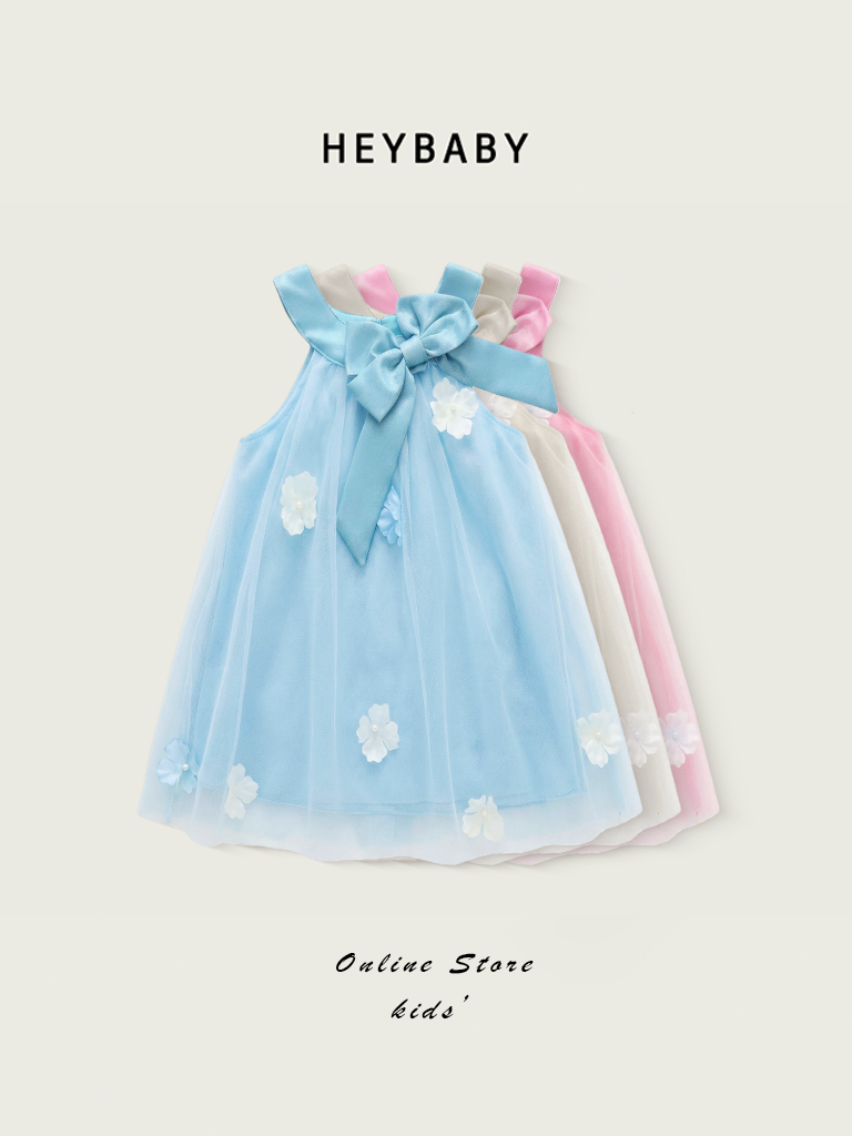 6 เดือน-5 ปี สําหรับ เด็กผู้หญิง แฟชั่นฤดูร้อน ชุดเดรสแขนกุด ผ้าตาข่าย ประดับโบว์ ชุดเจ้าหญิง สําหรับเด็กผู้หญิง