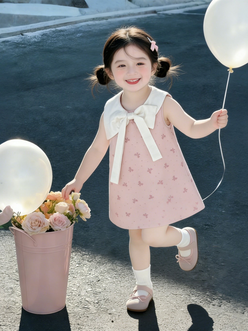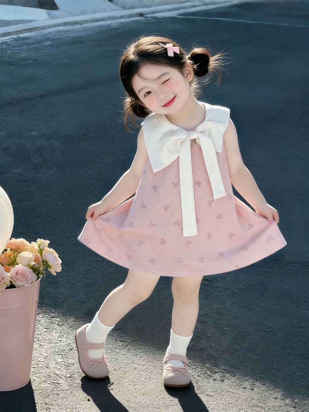 1-9 ปี ชุดสาวเกาหลี ชุดเจ้าหญิง เนื้อผ้าเบา แขนกุด นุ่มลื่น ม ันเงา สวมใส่สบาย แต่งโบว์น่ารักๆ สำหรับเด็กผู้หญิง