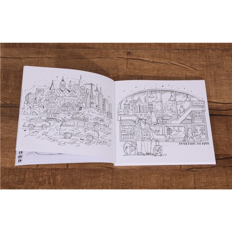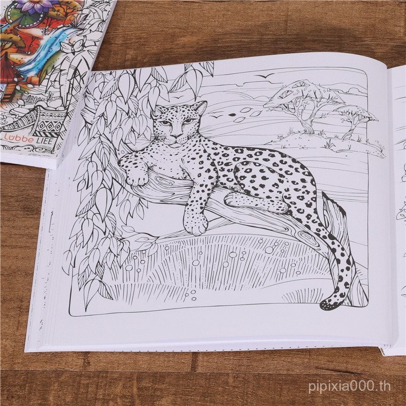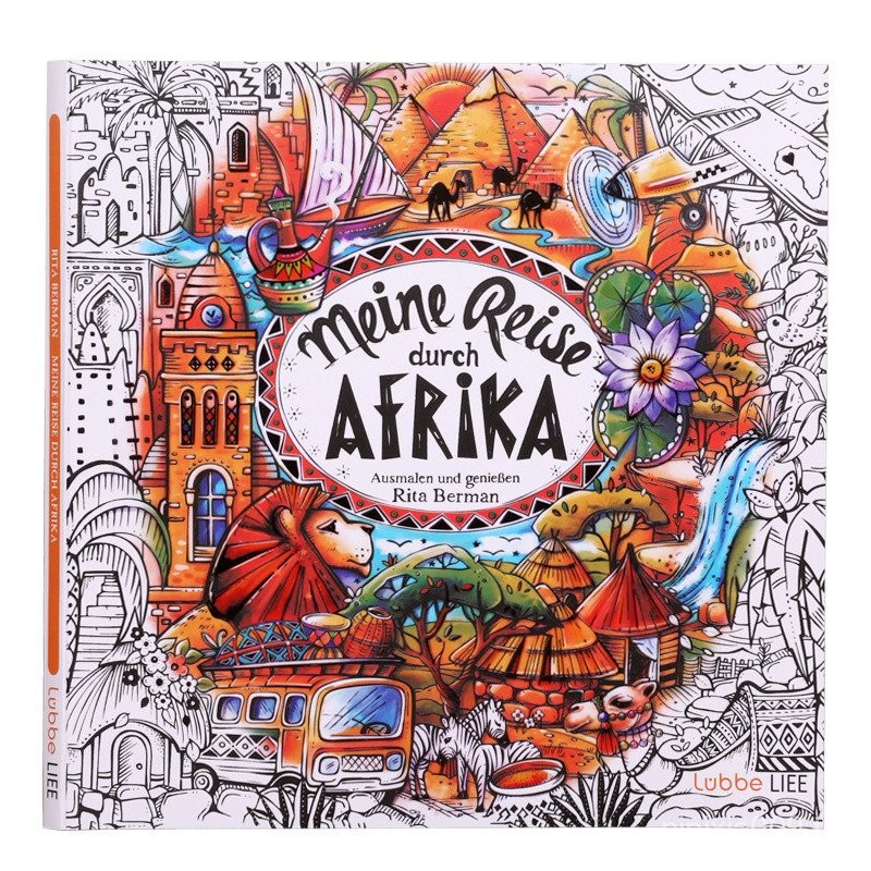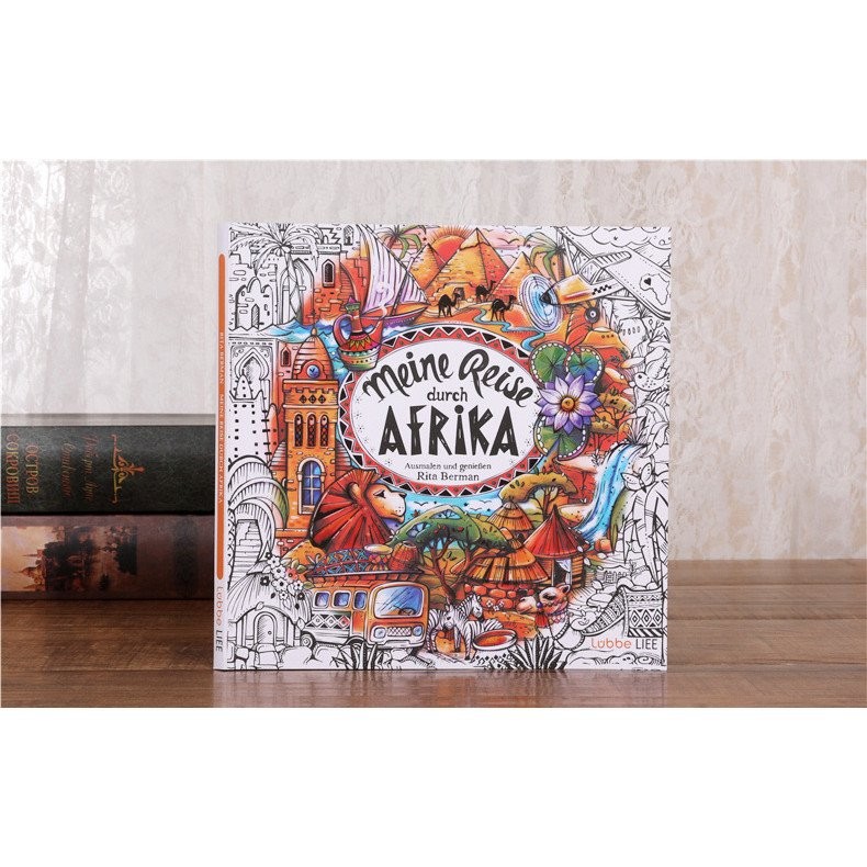 สมุดระบายสีการเดินทางของฉันผ่านแอฟริกาสำหรับผู้ใหญ่ สมุดวาดภาพบรรเทาความเครียด