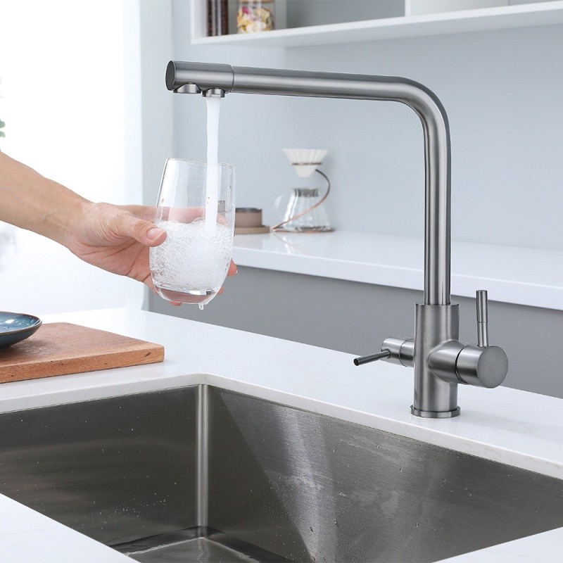 304 สแตนเลส ล้างผัก อ่างล้างจาน น้ำร้อนและน้ำเย็น น้ำดื่มโดยตรง ก๊อกน้ำ ครัวสามในหนึ่ง