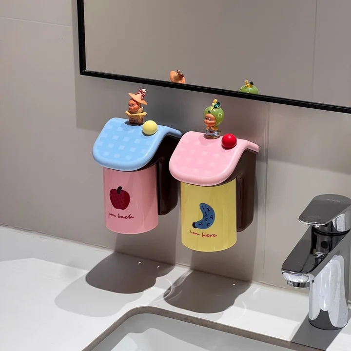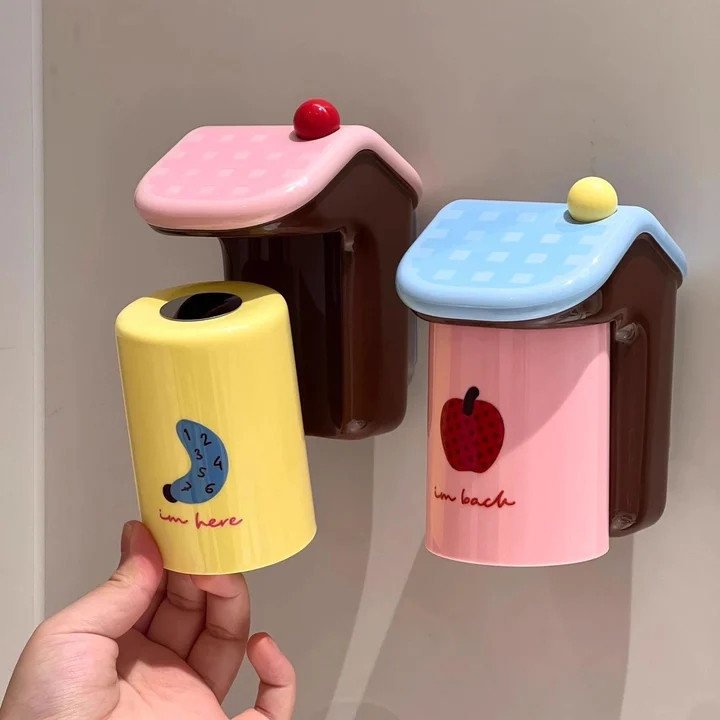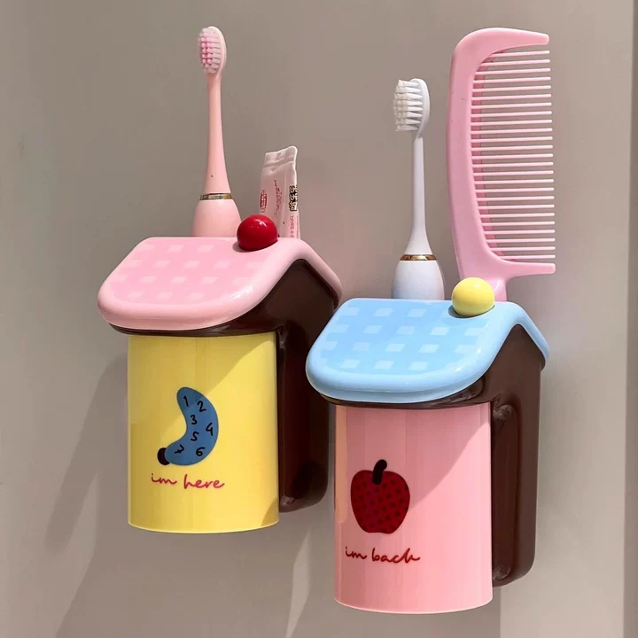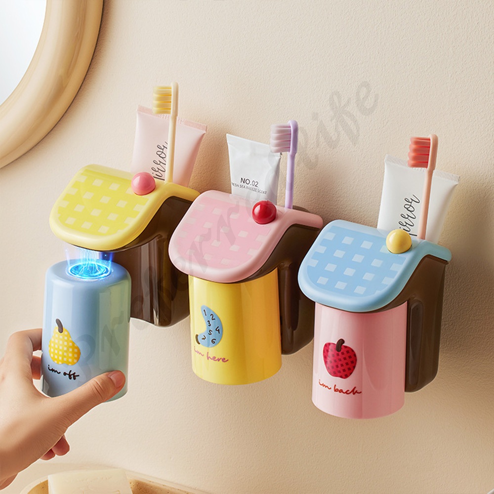 ชุดที่ใส่แปรงสีฟันแม่เหล็ก - อุปกรณ์จัดระเบียบติดผนังสี Dopamine สําหรับแปรงและยาสีฟันไฟฟ้า | คู่รักที่เก็บของในห้องน้ําพร้อมถ้วยปราศจากบีบ