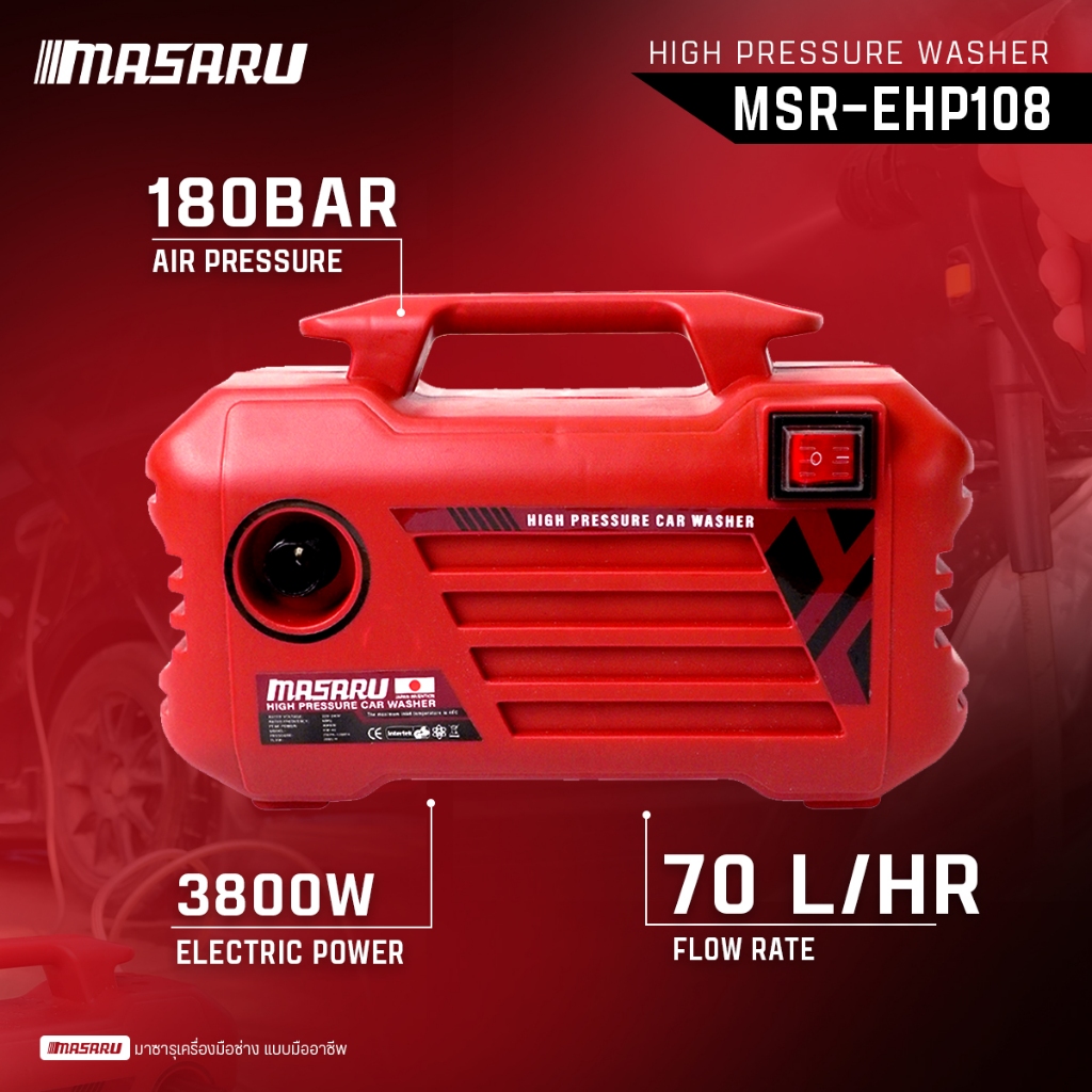MASARU เครื่องฉีดน้ำแรงดันสูง 3000 W High Pressure Washer มีอุปกรณ์ครบชุด น้ำหนักเบา