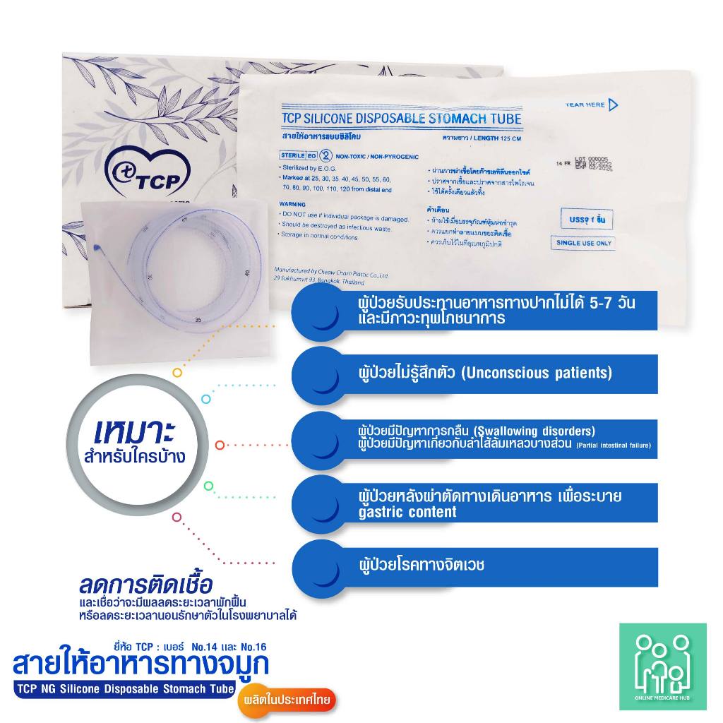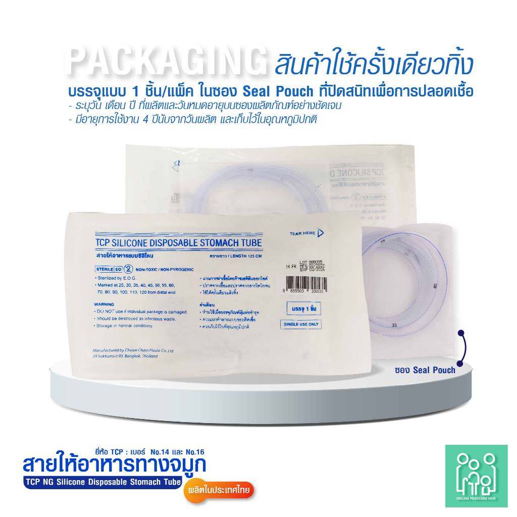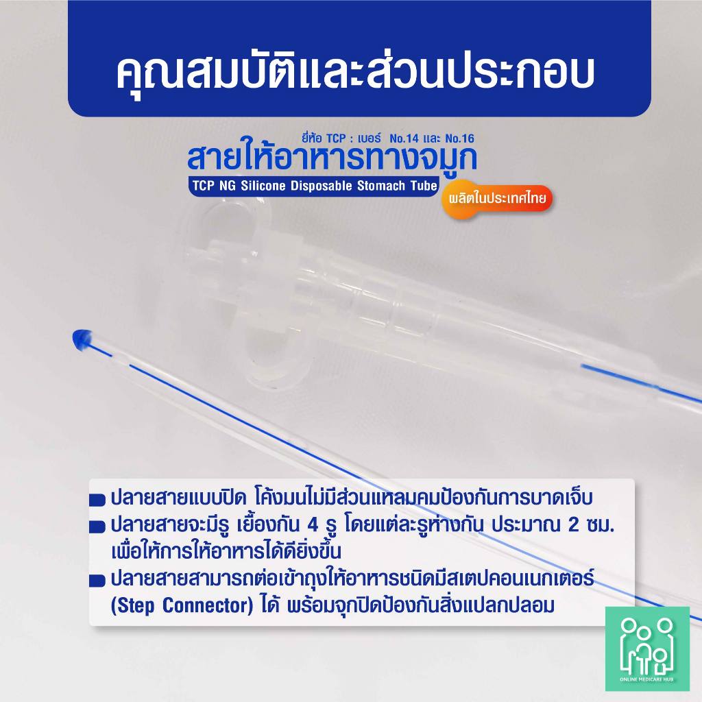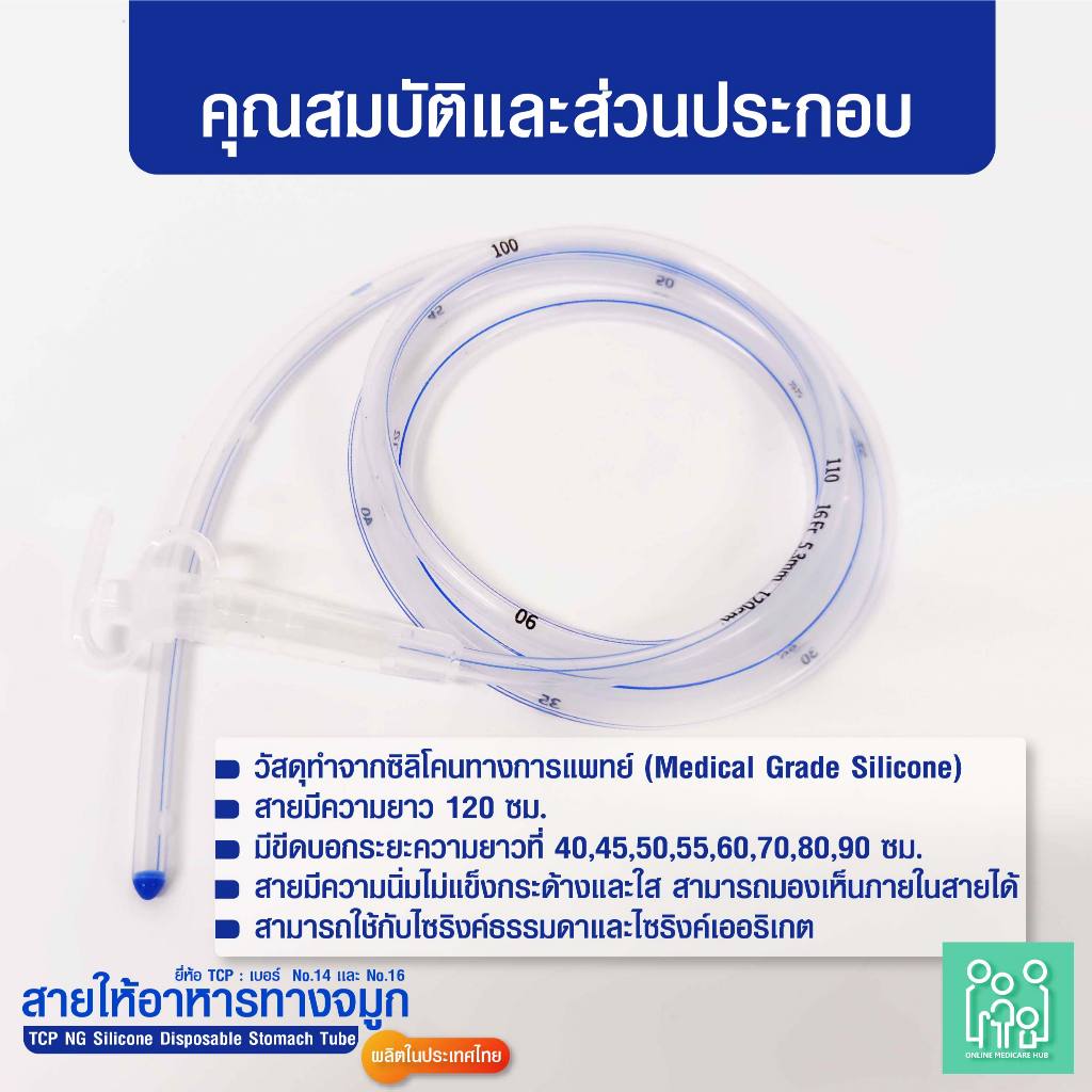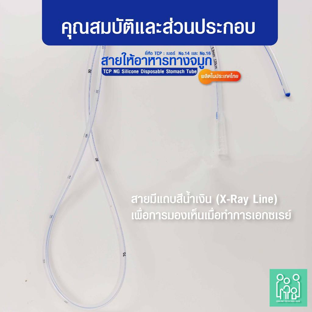(แพ็ค 1 ชิ้น)สายให้อาหารทางจมูก แบบซิลิโคน no.14,16 NG Silicone Disposable Stomach Tube (TCP Brand)