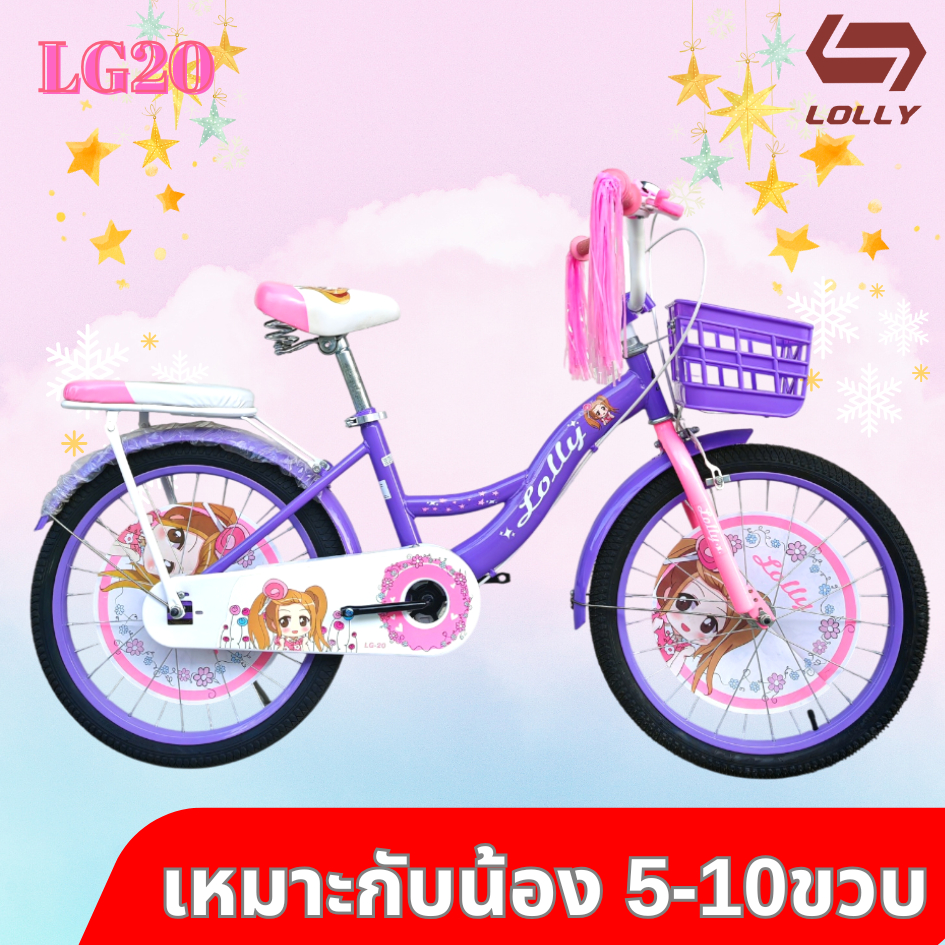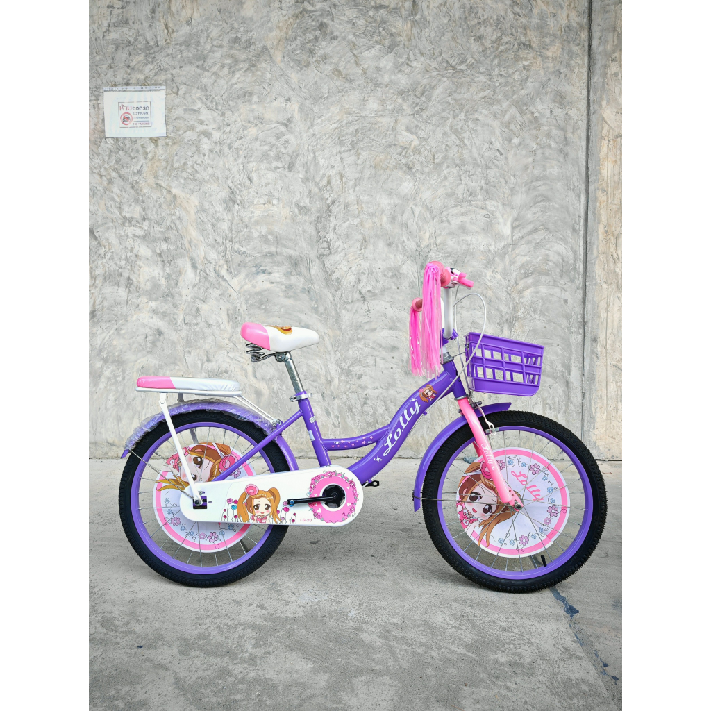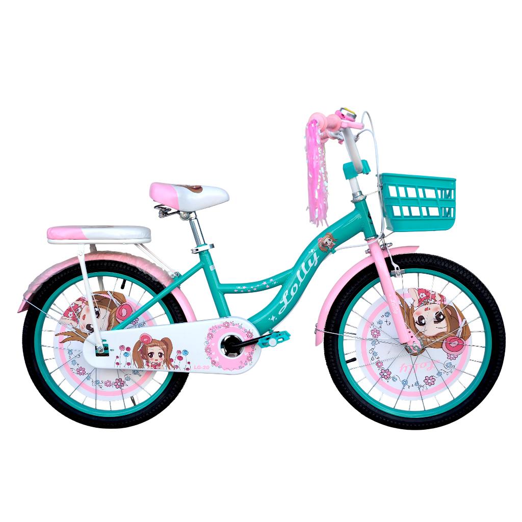 จักรยานเด็กผู้หญิง จักรยานลายการ์ตูน 20 นิ้ว รุ่น LOLLY Girl มีพู่ที่ปลายแฮน เบาะหน้าหลัง หน้าริมเบรกหลังดั่มเบรก