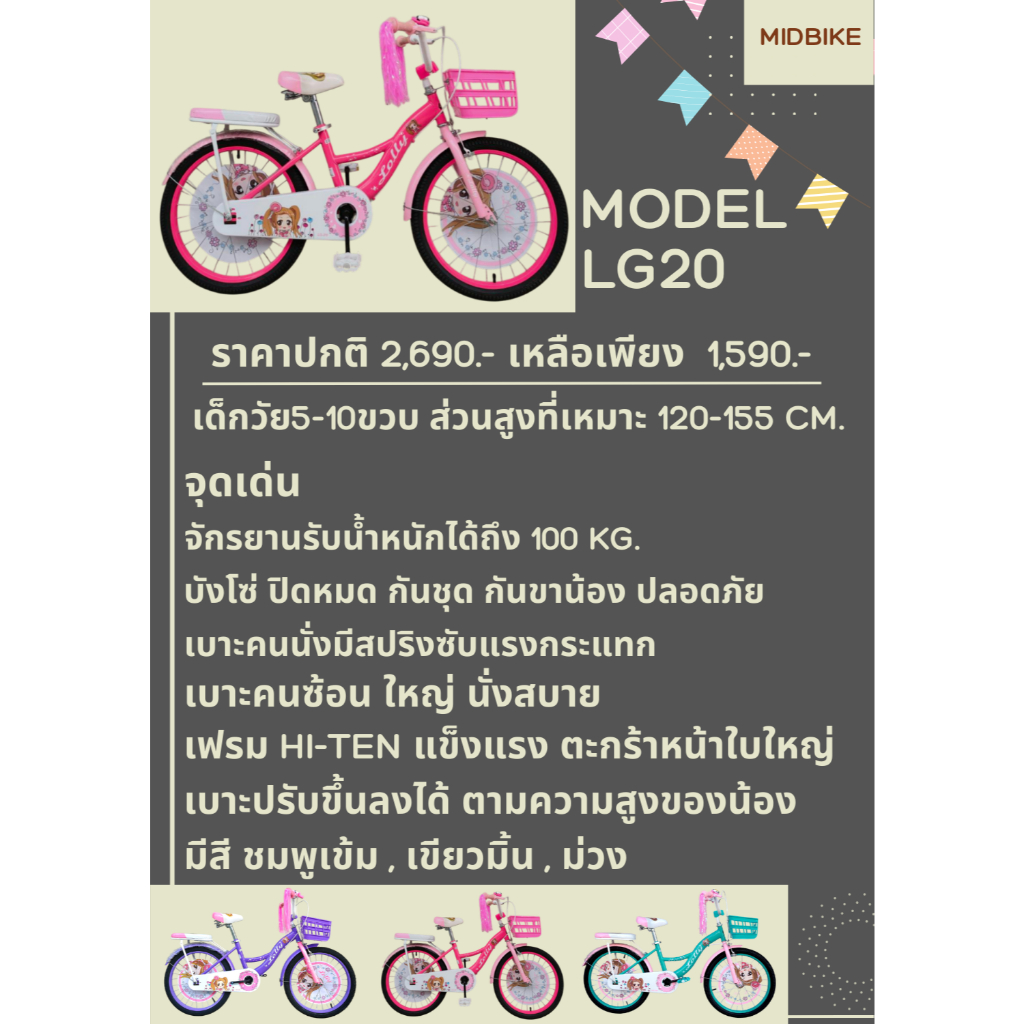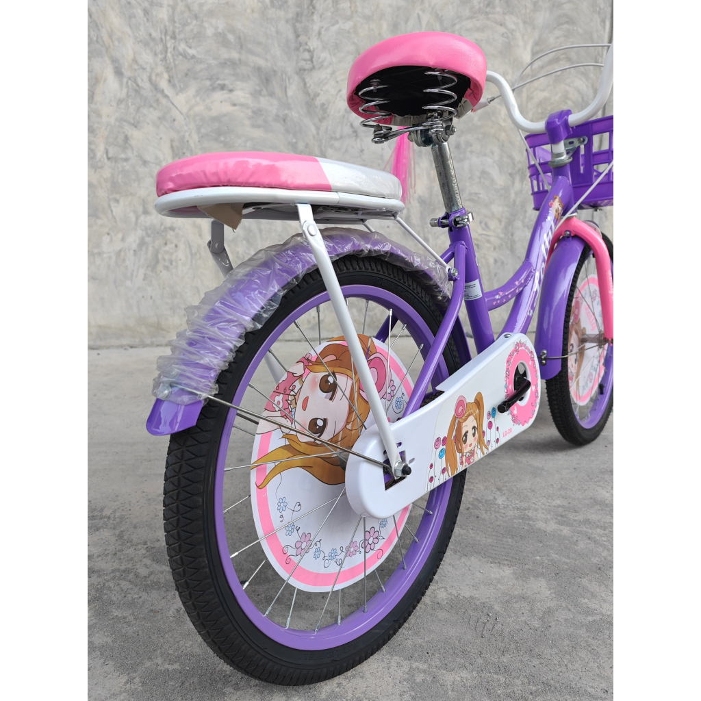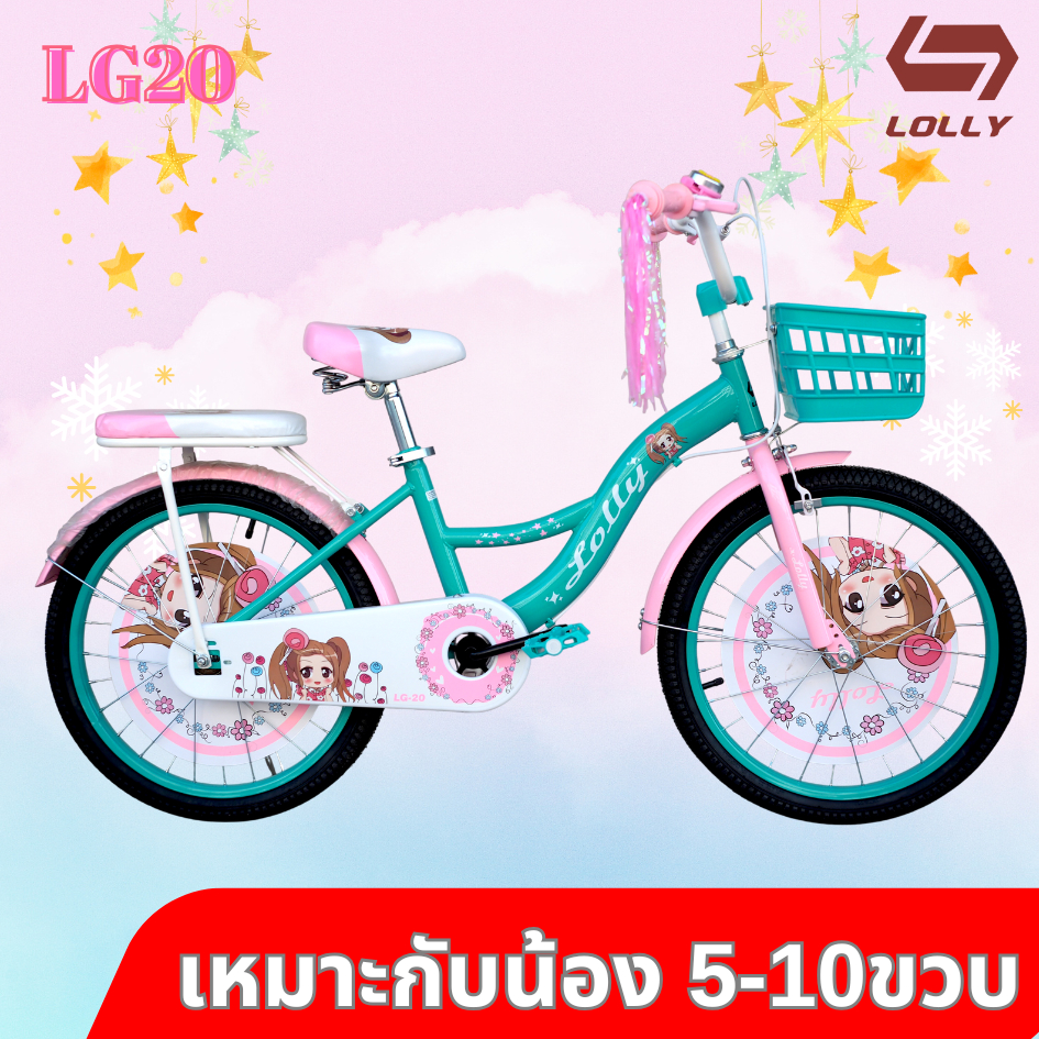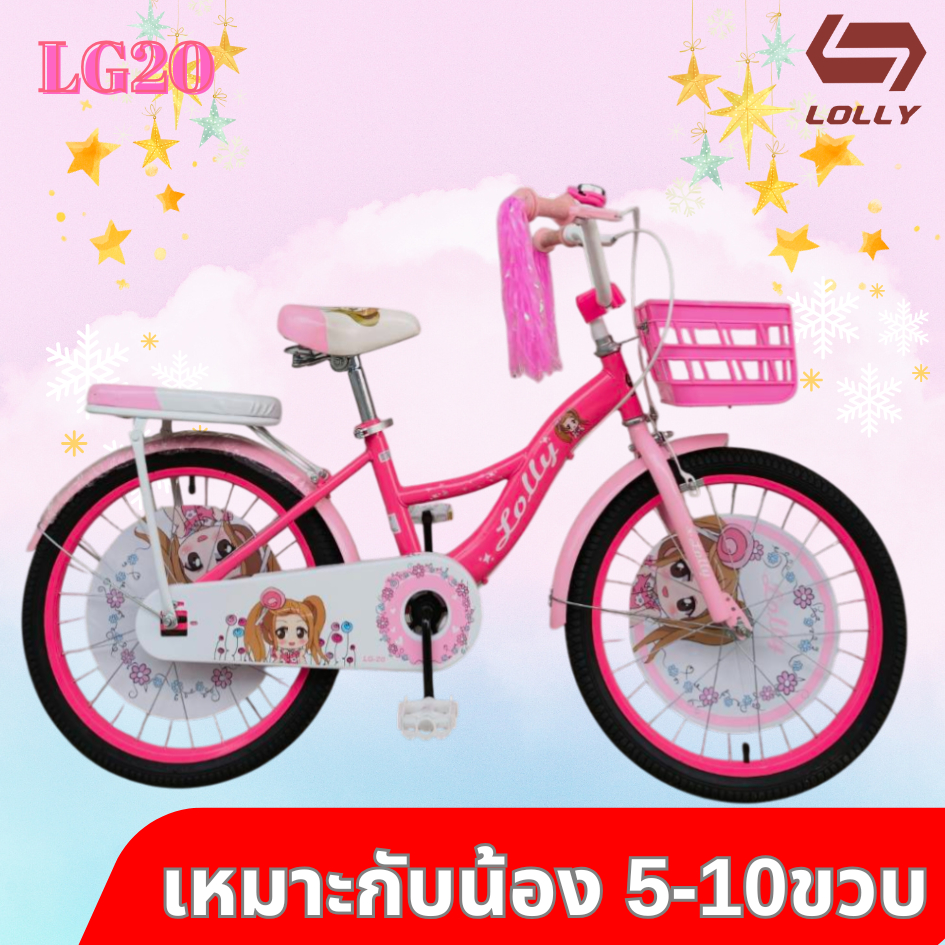 จักรยานเด็กผู้หญิง จักรยานลายการ์ตูน 20 นิ้ว รุ่น LOLLY Girl มีพู่ที่ปลายแฮน เบาะหน้าหลัง หน้าริมเบรกหลังดั่มเบรก