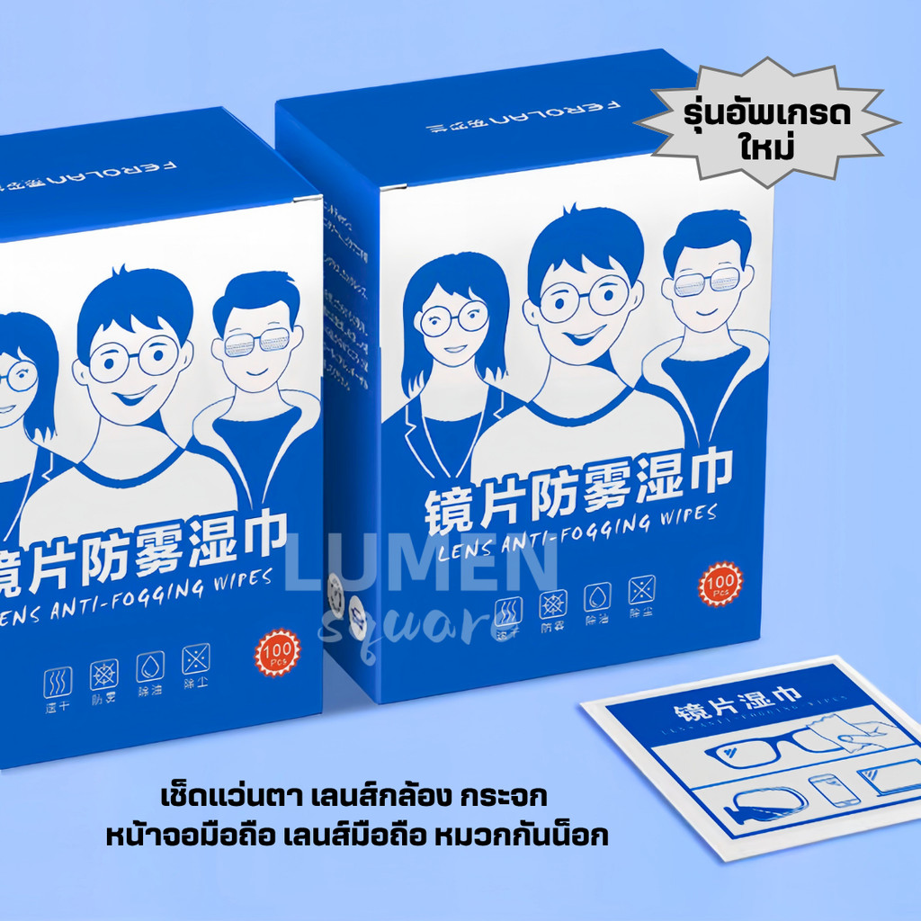 แผ่นเช็ดแว่นตา แผ่นเช็ดแว่นตากัน ฝ้า แผ่นเช็ดเลนสแว่น แผ่นเช็ดเลนส์ ผ้าเช็ดแว่นกันฝ้า เช็ดเลนส์ 100แผ่น กันฝุ่น
