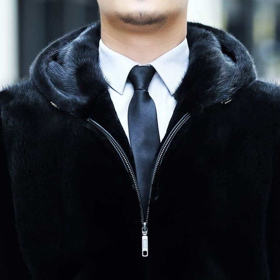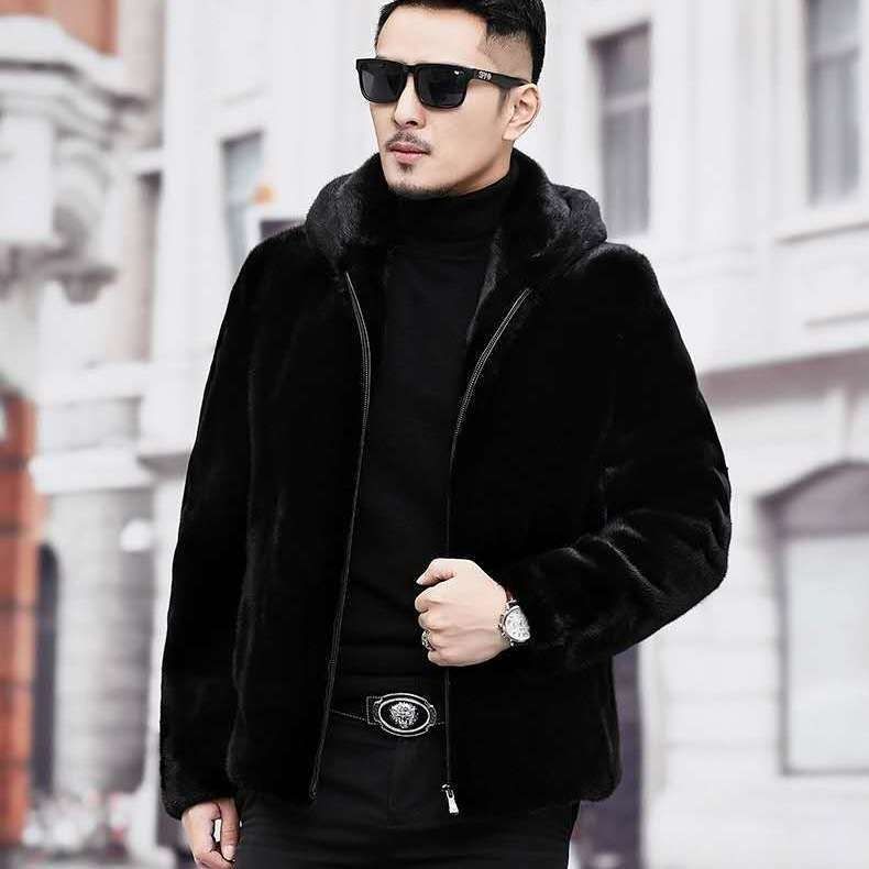 Mink Coat Men American Imported Velvet Whole Mink Fur Winter Hooded Jacket Mink Fur Coat Short