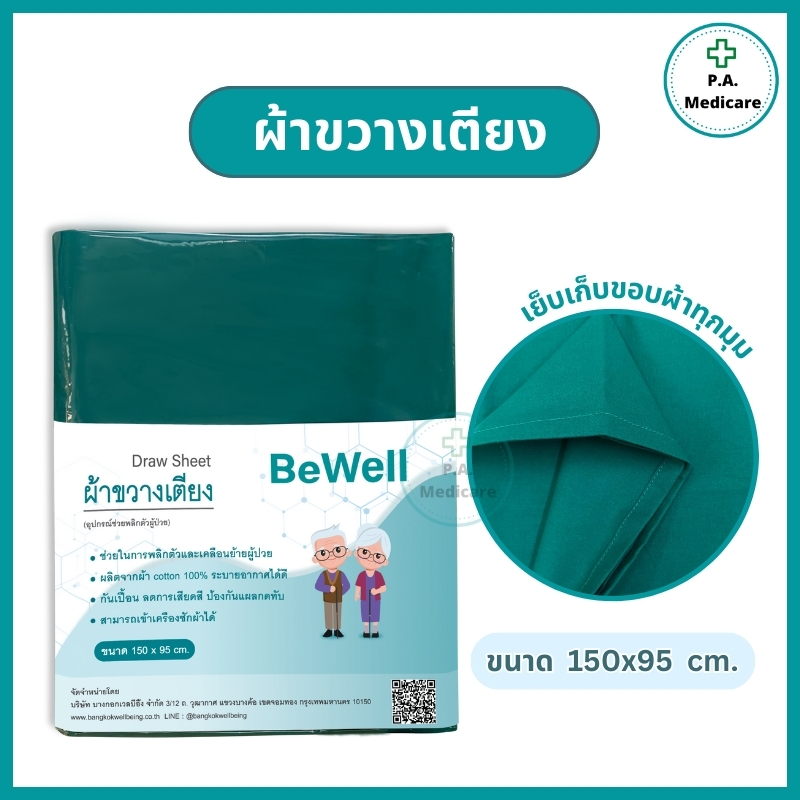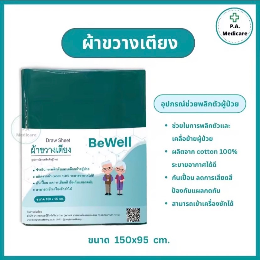 Bewell ผ้าขวางเตียง ผ้ายกตัวผู้ป่วย/คนไข้ ช่วยเคลื่อนย้ายผู้ป่วย พลิกตัว ลดการเสียดสี ระบายอากาศดี ซักได้ 150x95 ซม.