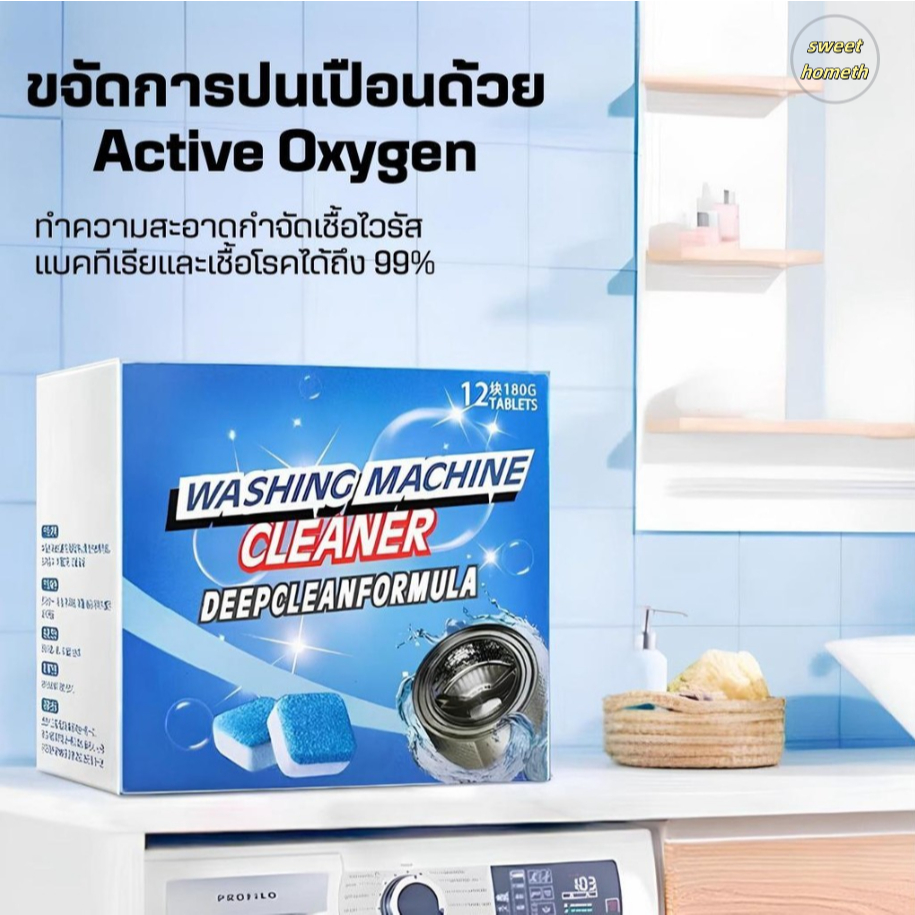 (1กล่อง/12ชิ้น) เม็ดฟู่ทำความสะอาดเครื่องซักผ้า กำจัดเชื้อแบคทีเรียและเชื้อราได้