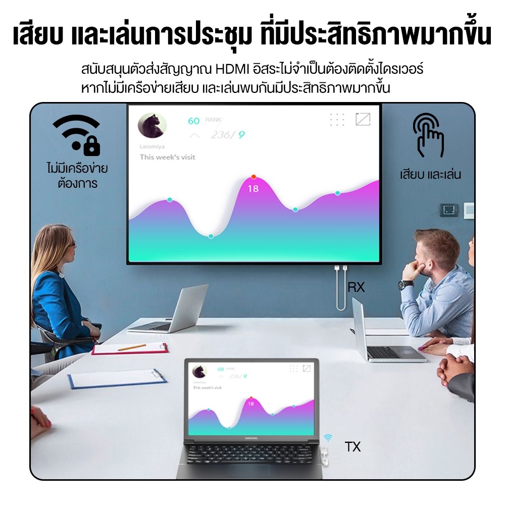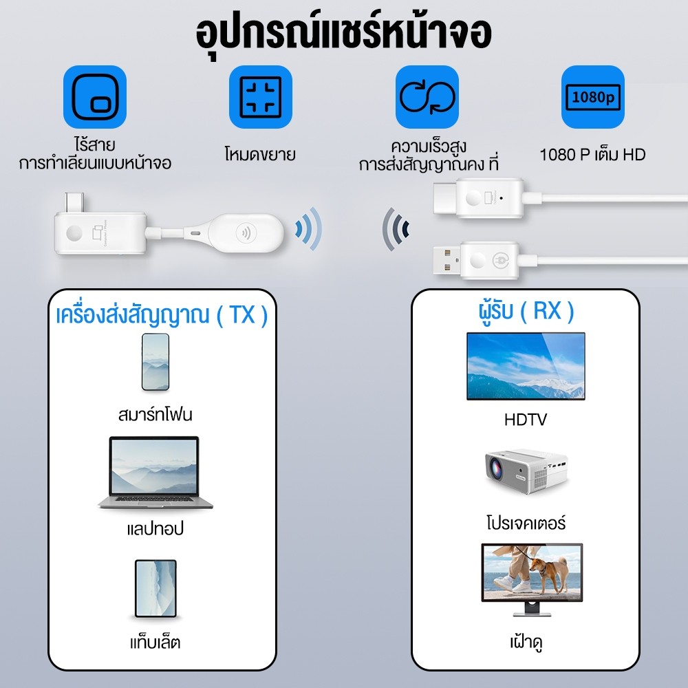 ใหม่ล่าสุด❗️] อุปกรณ์แชร์หน้าจอไร้สาย 1080P HDTV to Type-C HDMI Wireless Transmitter Receiver รับสัญญาณถึง 50 เมตร
