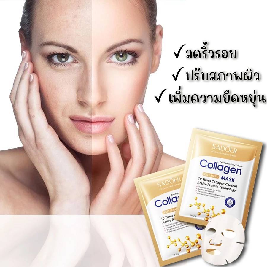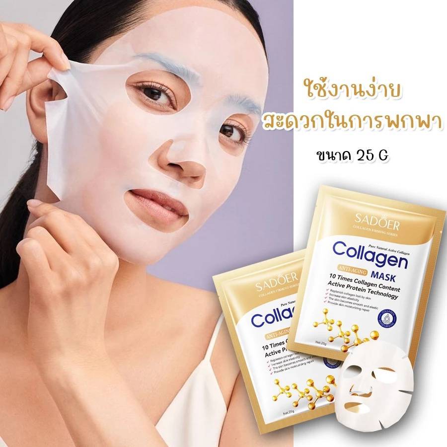 ( มีส่งด่วน ) Sadoer Collagen Sheet Mask มาส์กหน้าคอลลาเจน หน้าขาวใส ชุ่มชื้น กระจ่างใส