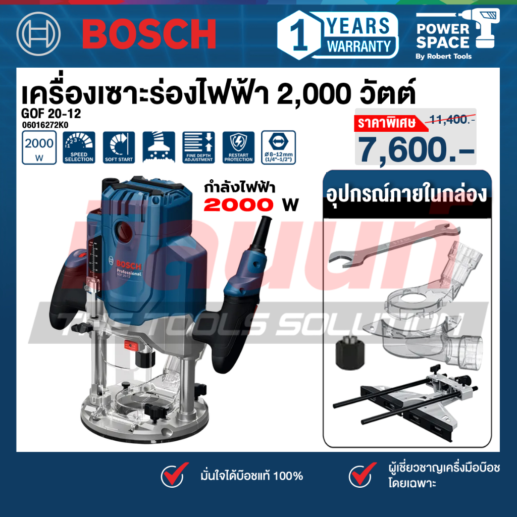 Bosch - GOF 20-12 เครื่องเซาะร่องไฟฟ้า 2,000 วัตต์ (06016272K0)
