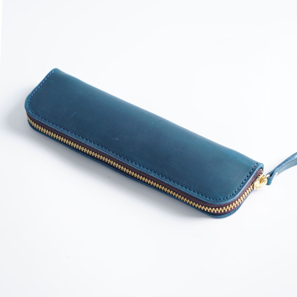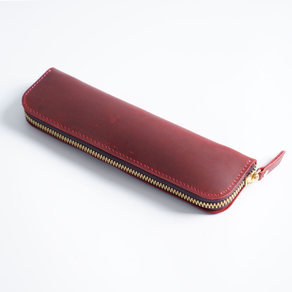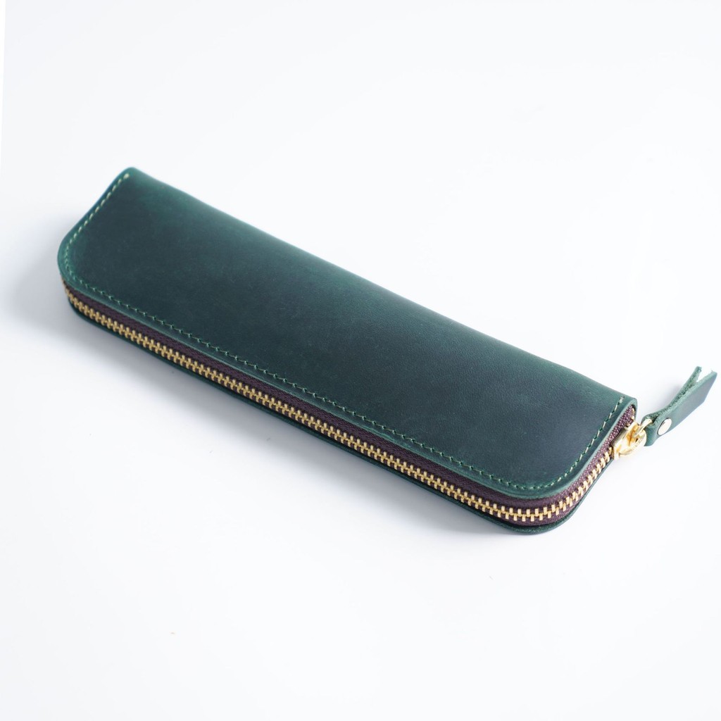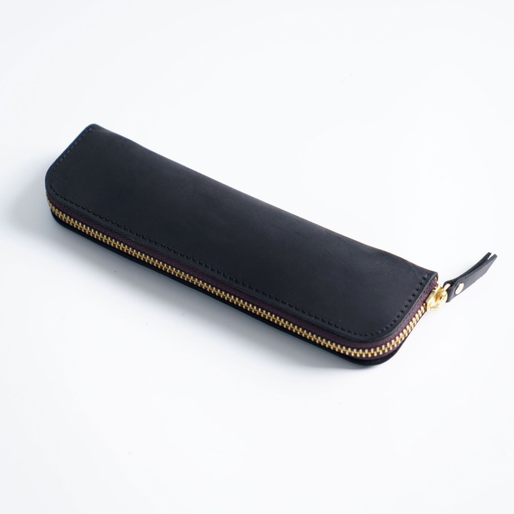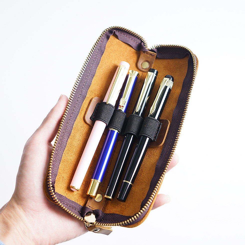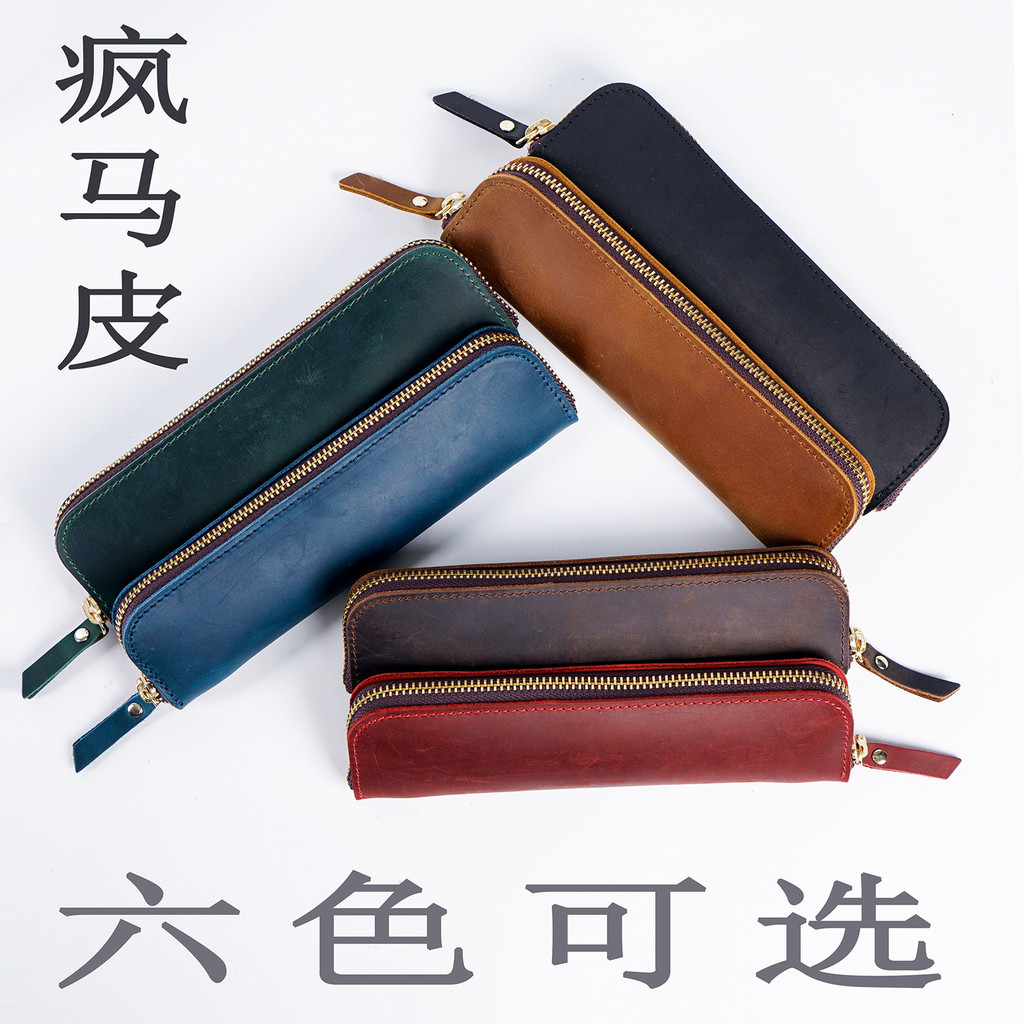 Simple Cowhide Zipper Pencil Case Mens Pen Protective Case Portable Stationery Bag Storage N2660