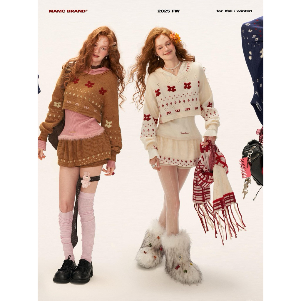 MAMC Star Bloom Crop Knit Set ✨ชุดเซ็ทไหมพรมน่ารัก ลายดาวดอกไม้ ชุดเที่ยวคริสต์มาส