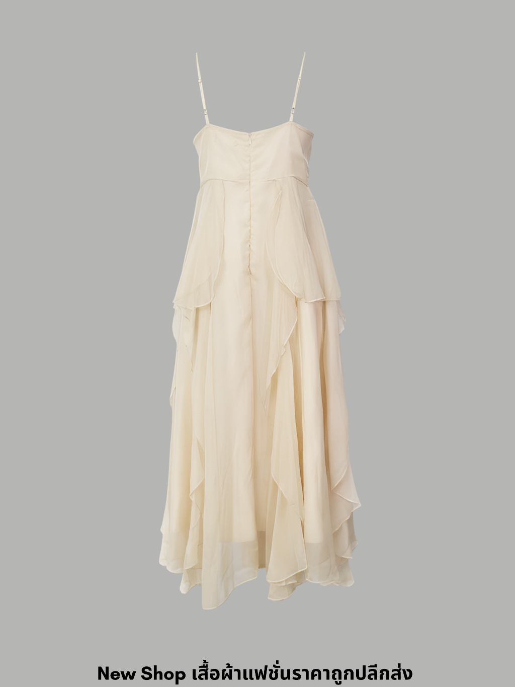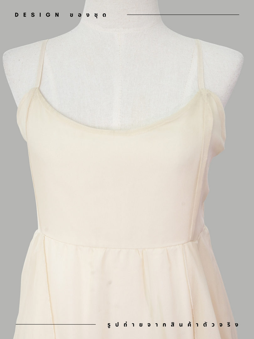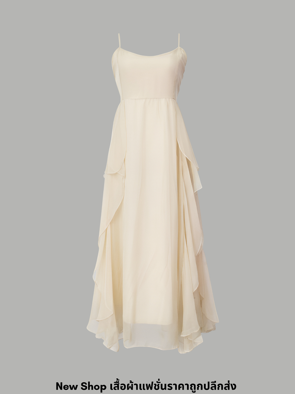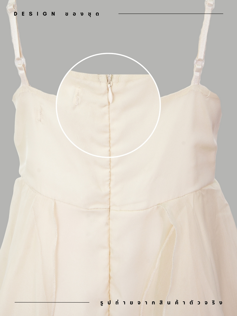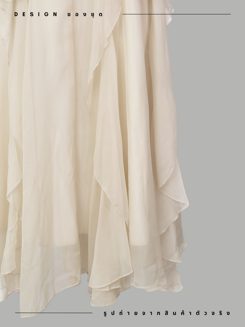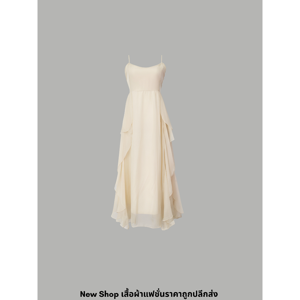งานแต่งงานและงานอีเว้นท์ สีเหลืองนวล คอเหลี่ยม ซิปซ่อนด้านหลัง ผ้าโพลีเอสเตอร์ ความ ยาว47