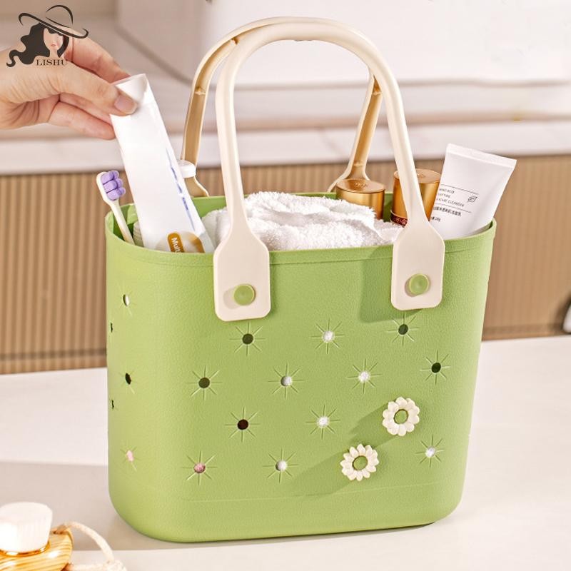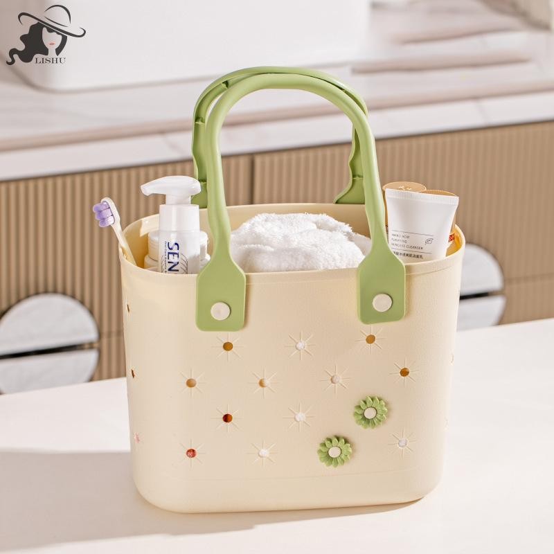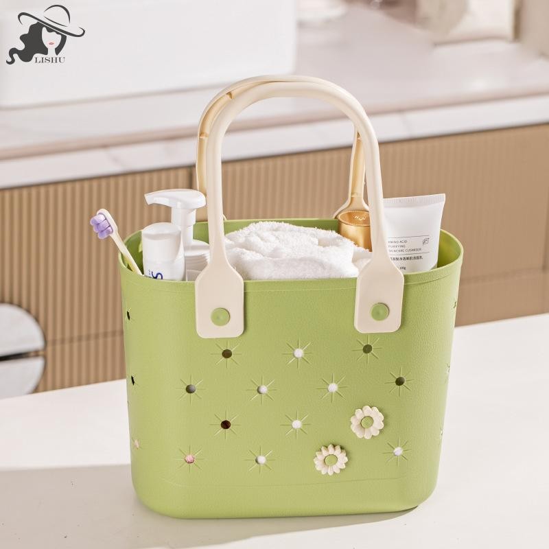 Lishu Simple Storage ตะกร้าห้องน้ําในครัวเรือนแบบพกพา Hollow ท่อระบายน้ําตะกร้าเก็บนักเรียนหอพักตะกร้าอาบน้ํา th