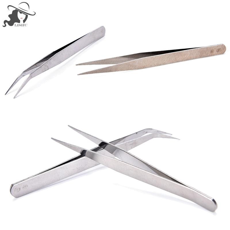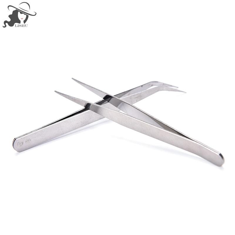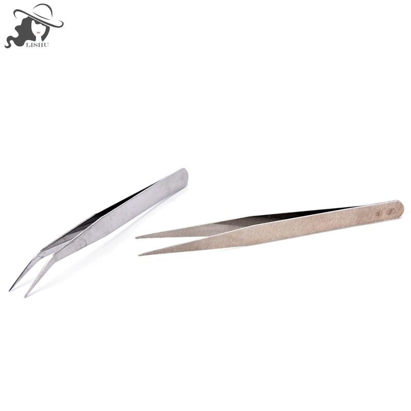 Lishu 2 ชิ้นสแตนเลสตรง El แหนบ Patchwork Hook Pick-up เครื่องมือแต่งหน้า th