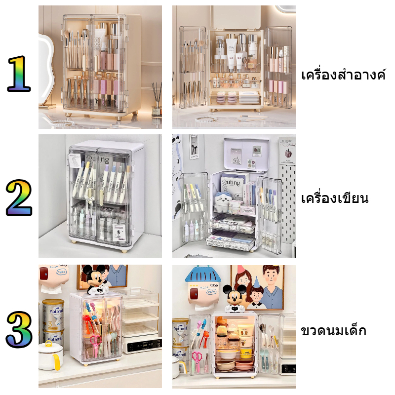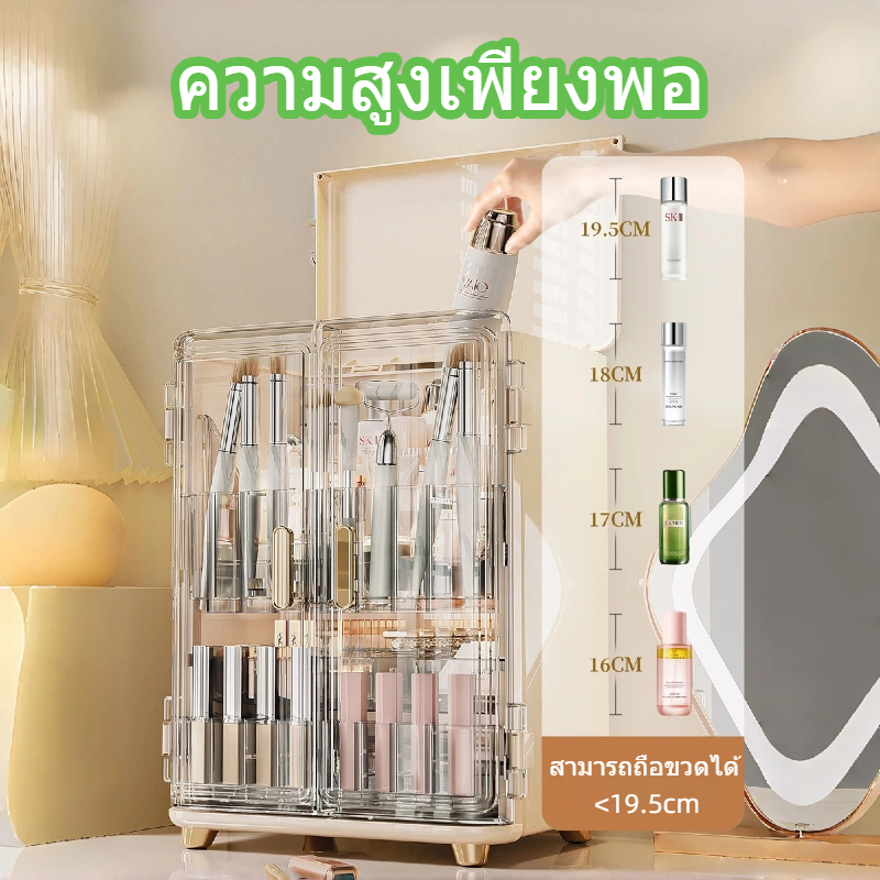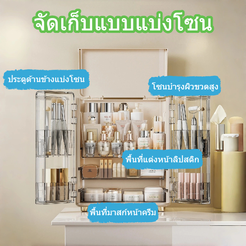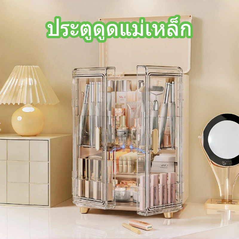 ชั้นวางเครื่องสำอาง มีลิ้นชัก ความจุขนาดใหญ่ ชั้นวางเครื่องสำอางค์ เปิดปิดด้วยแม่เหล็ก พร้อมช่องใส่ลิปสติก กันฝุ่นกันความชื้น