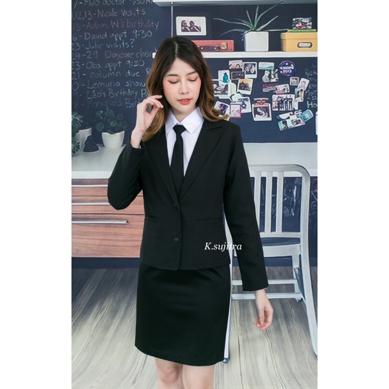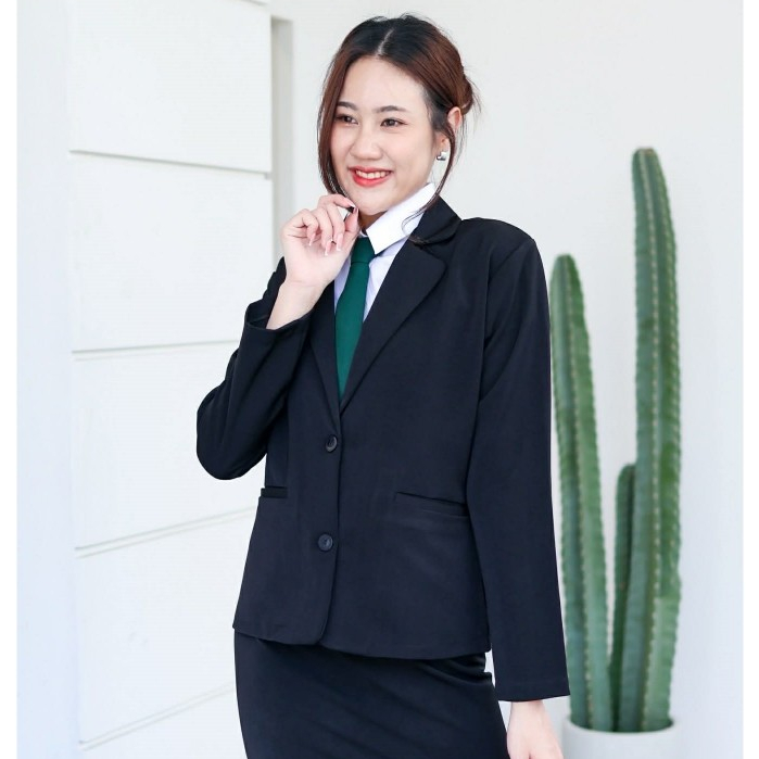 เสื้อสูทใส่ทำงานผู้หญิงสีดำ ทรงเข้ารูป ผ้าวาติโนและผ้าซุปเปอร์นาโน