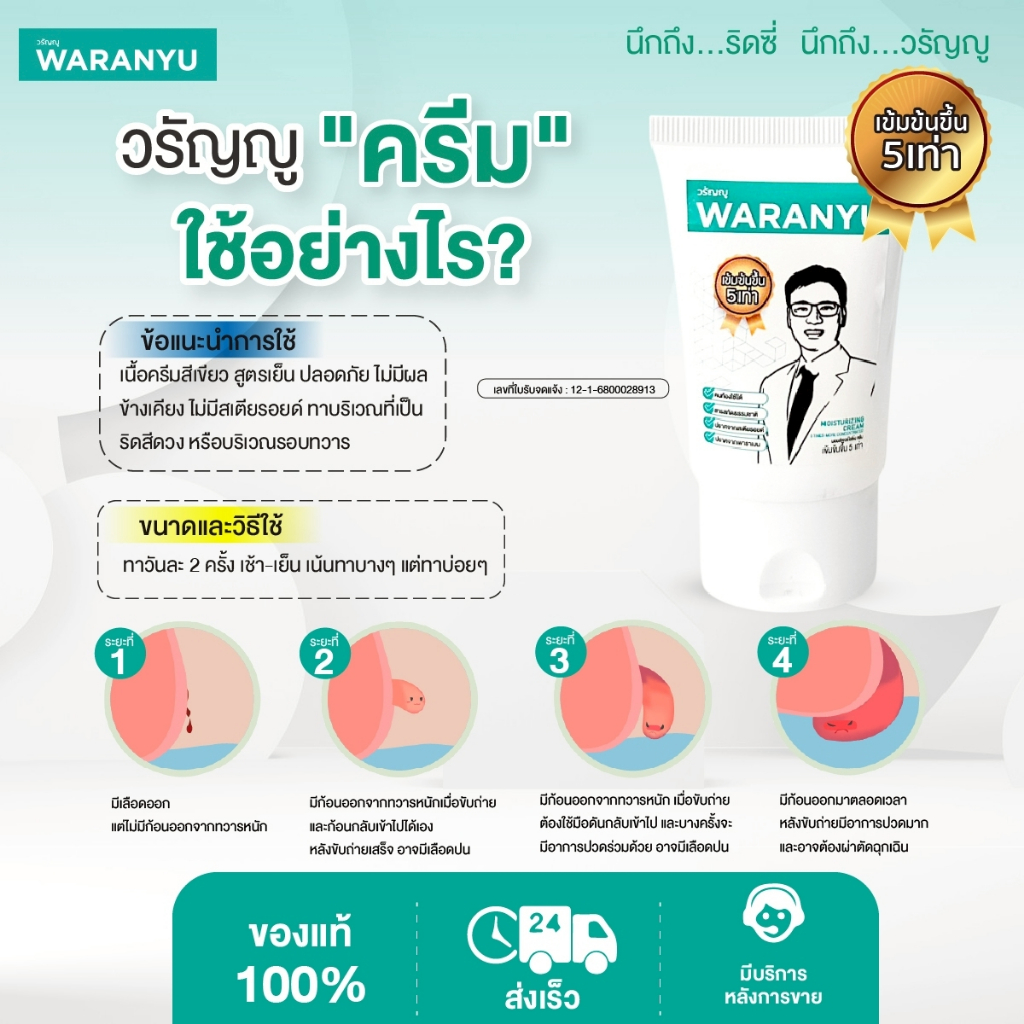 (แพคเกจจิ้งใหม่ 2แถม1 สูตรเข้มข้นขึ้น5เท่า) หมอวรัญญู ริดสีดวง ชุดทาภายนอก - ทาภายนอก 2 หลอด แถม 1 หลอด (60 กรัม)