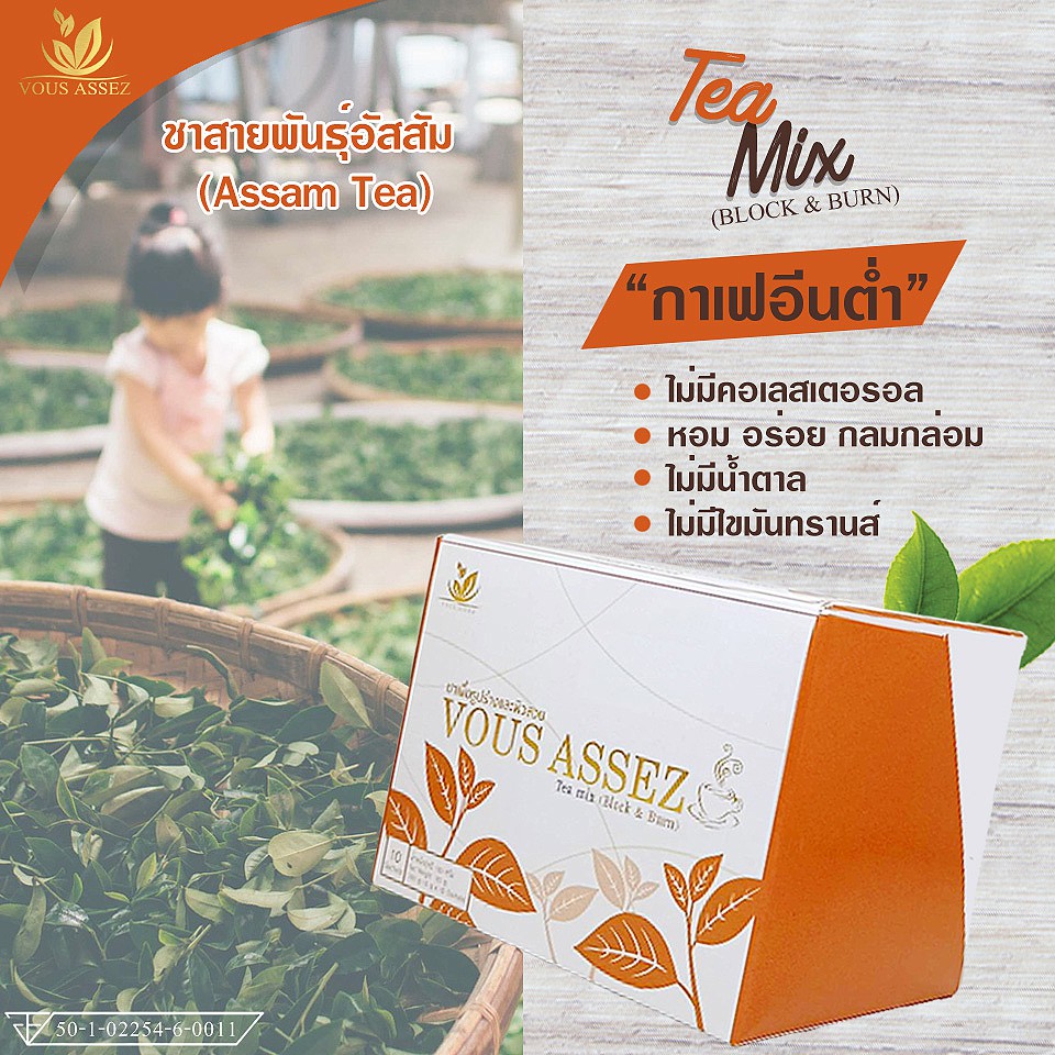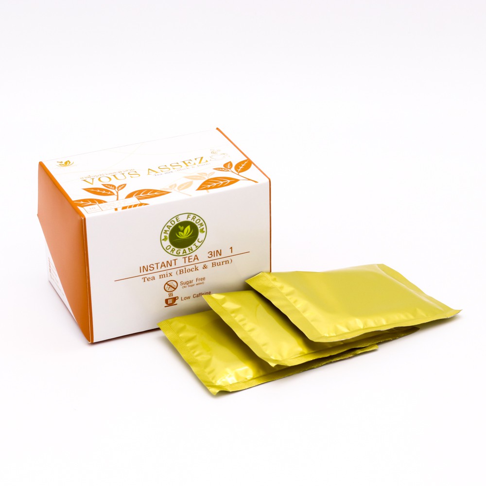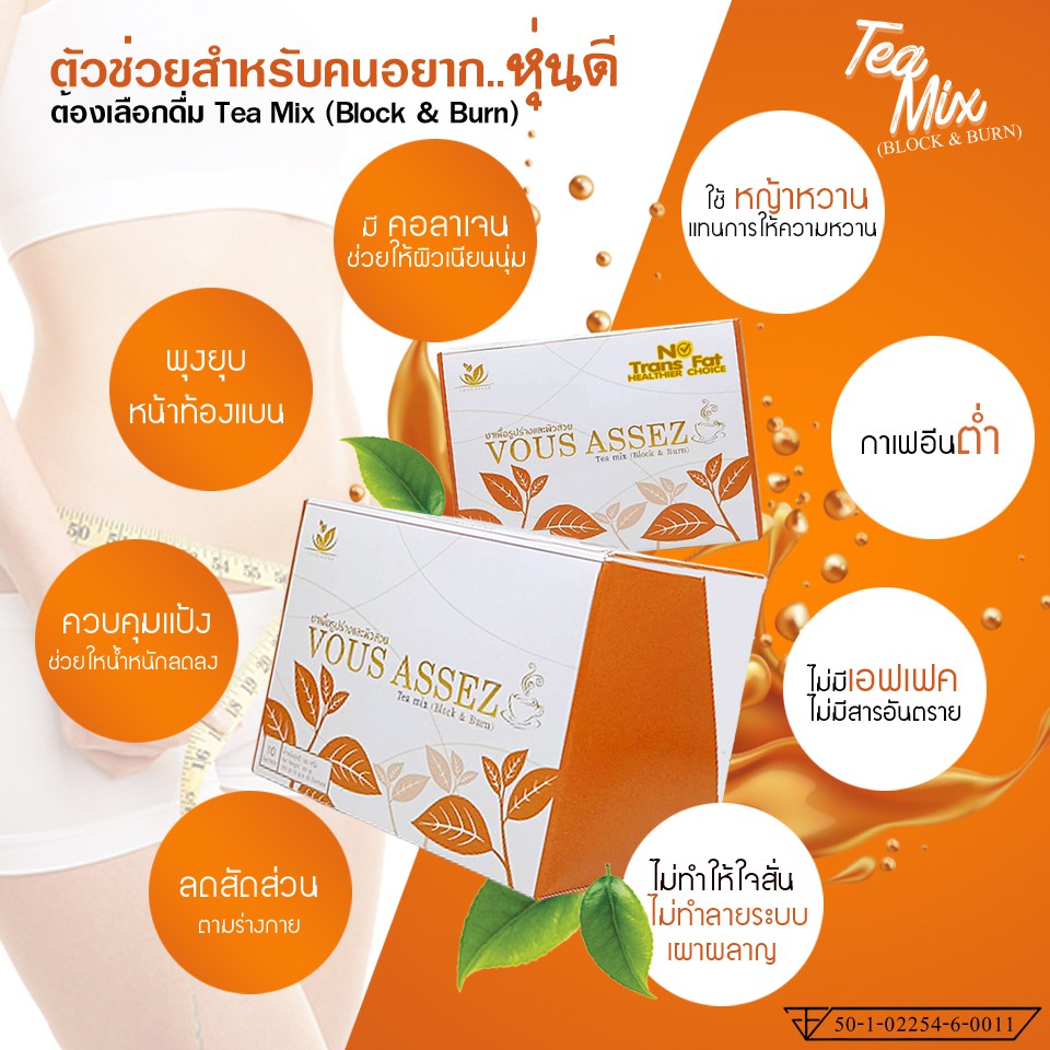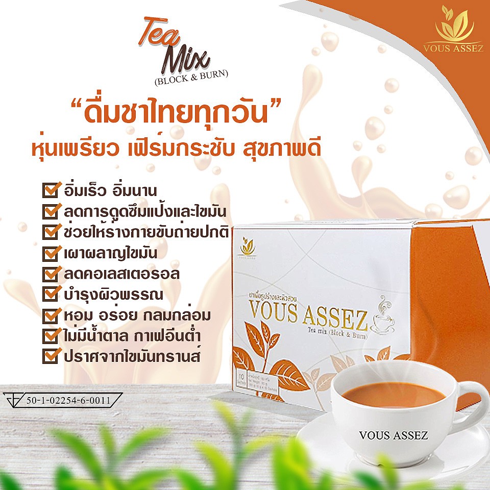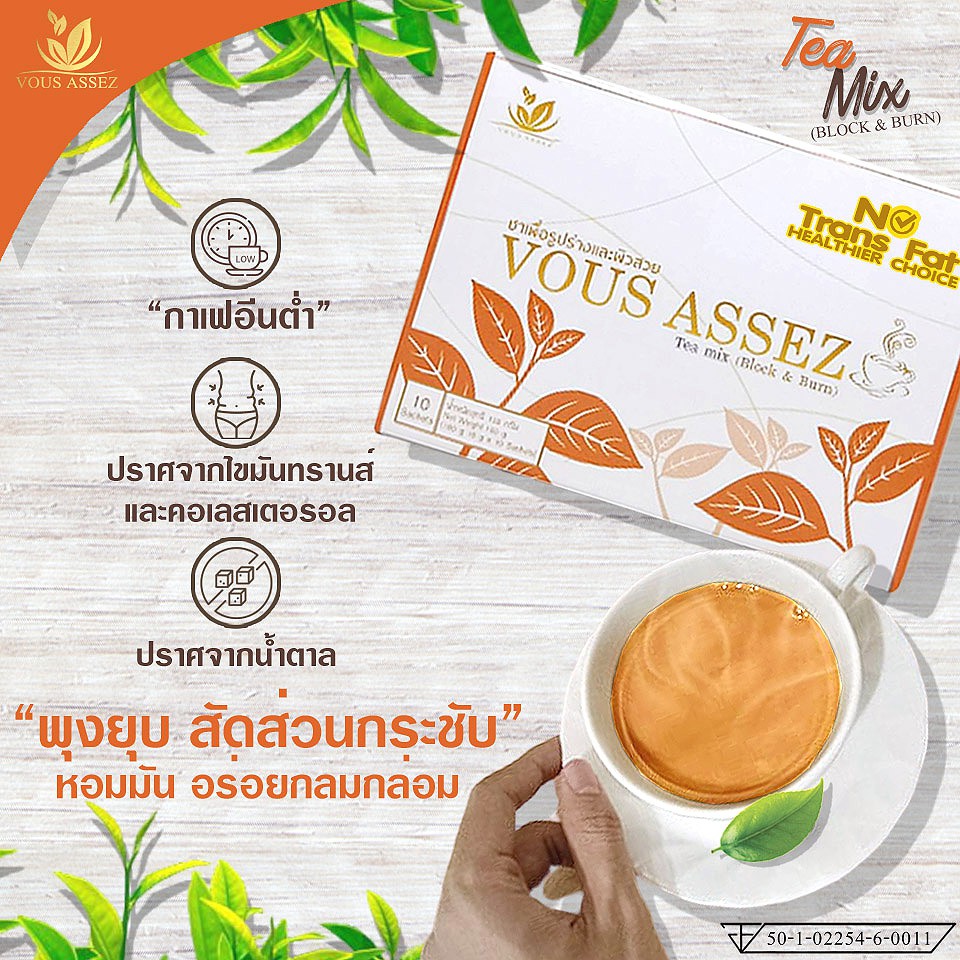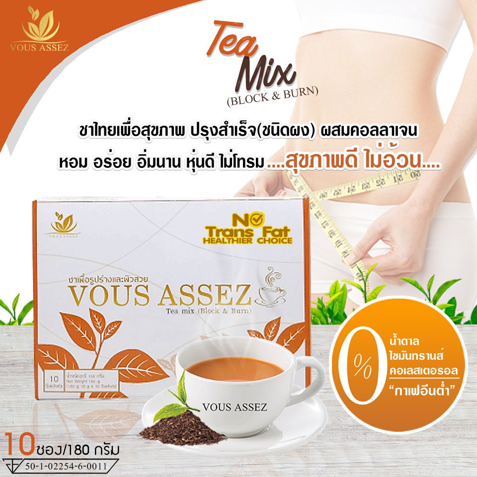 ชาลดน้ำหนัก ชาคุมน้ำหนัก ผสมคอลลาเจน Vous Assez 3 in 1 ชนิดผง ชงร้อน Tea Mix (Block&Burn) ขนาด 180 กรัม