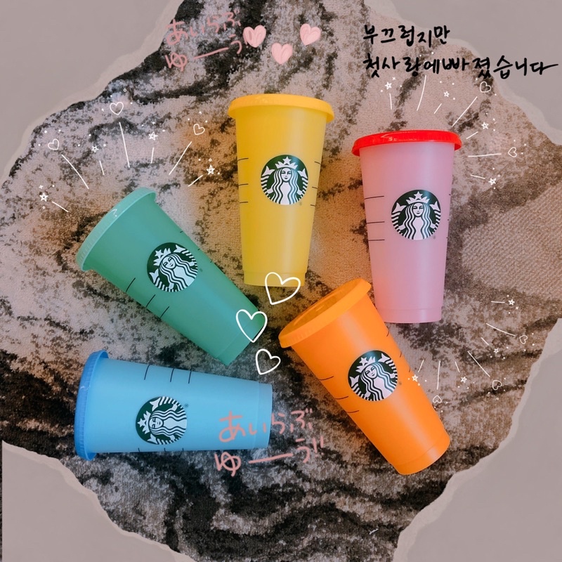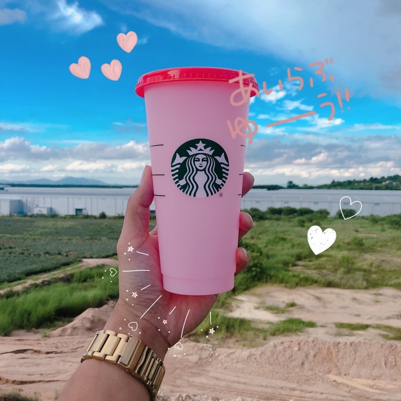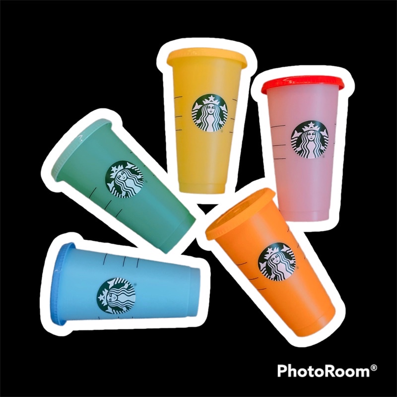 Starbucks Reusable Cups แก้วสตาร์บัค แก้วเปลี่ยนสี 🔥 สินค้าพร้อมส่งจากไทย 🔥แก้วน้ำน่ารัก แก้วรียูส 24 ออนซ์ + หลอด