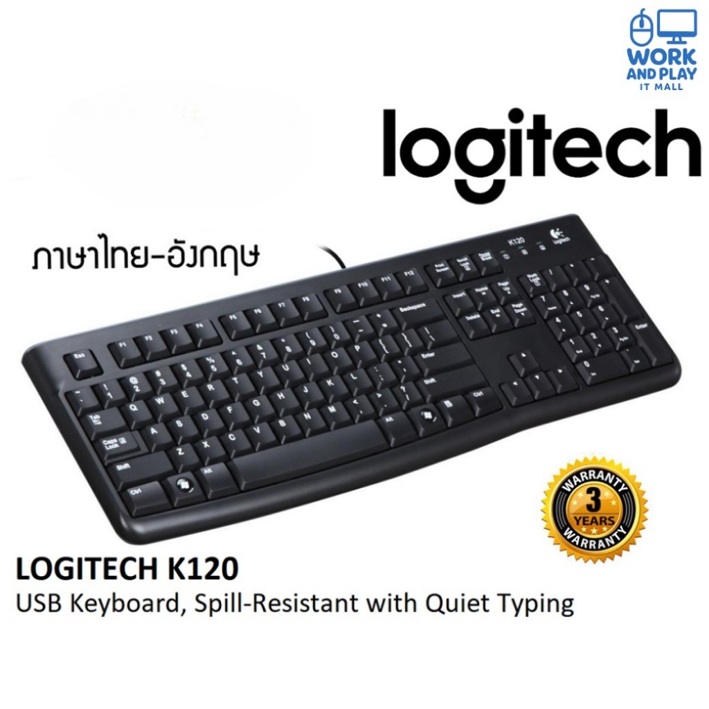 KEYBOARD LOGITECH K120 USB B100 คีย์บอร์ด คีย์ไทย-อังกฤษ รูปแบบมาตรฐาน ประกัน 3 ปี