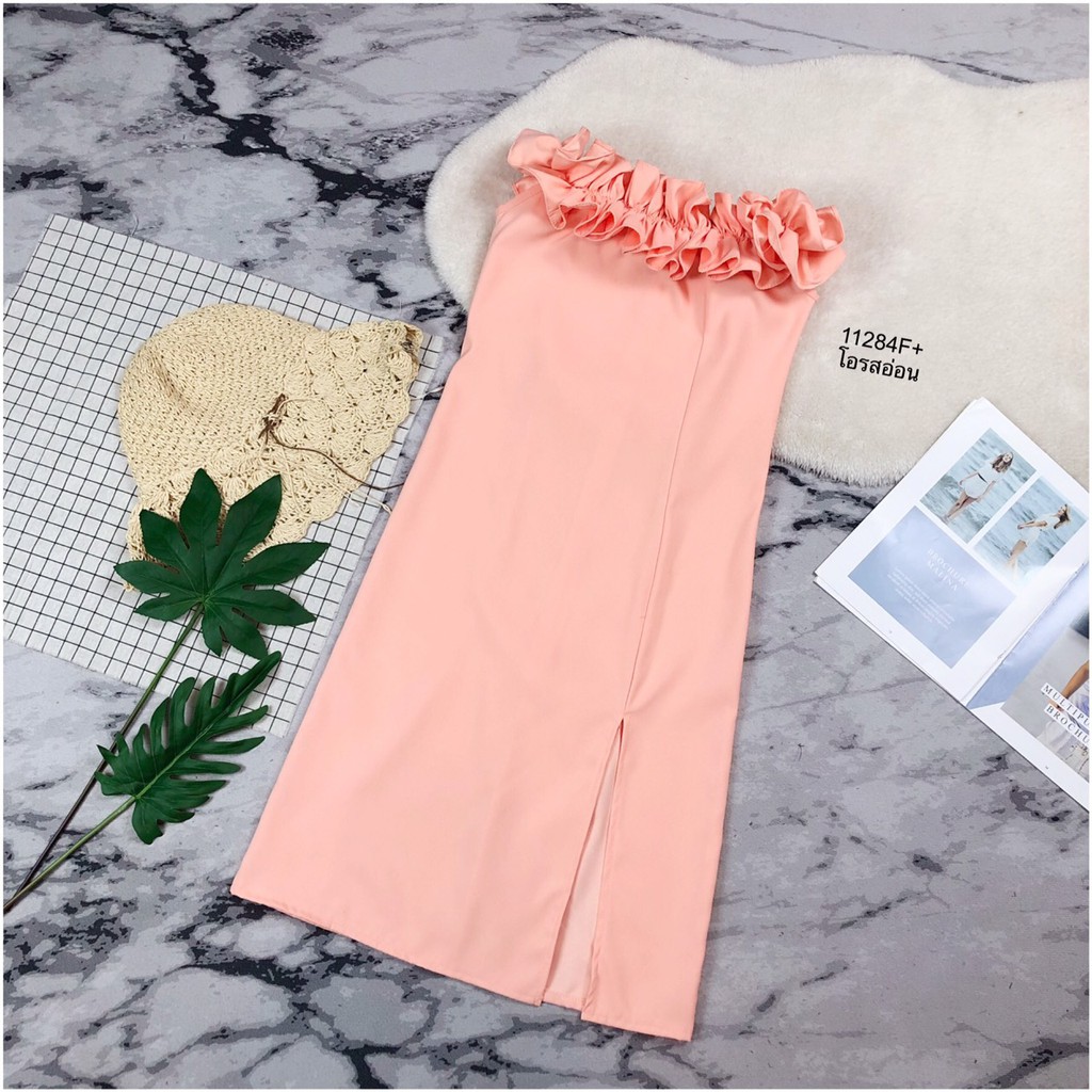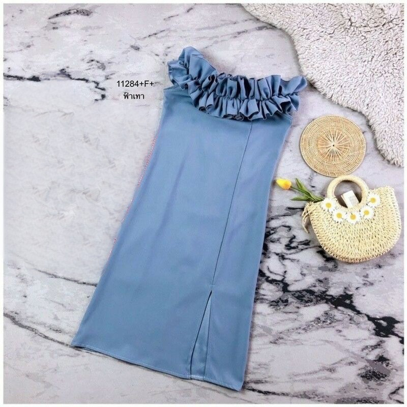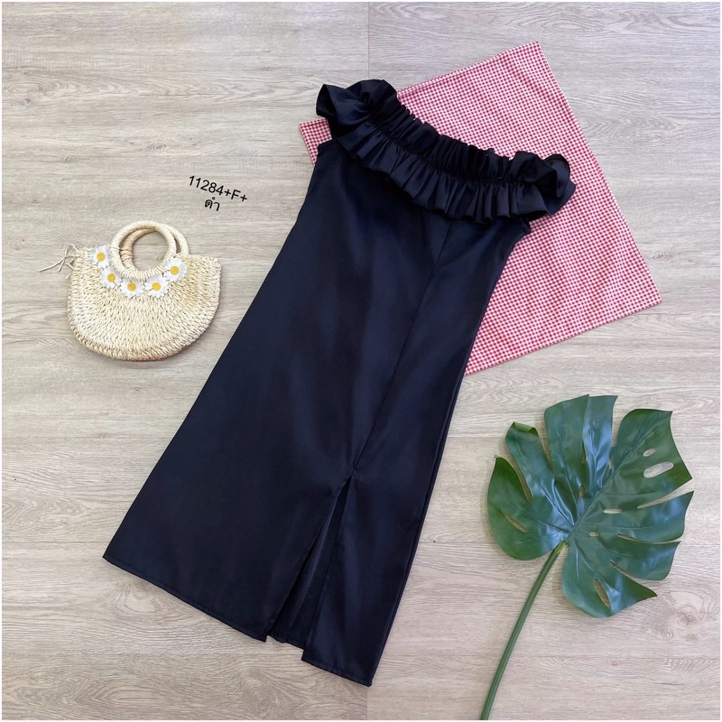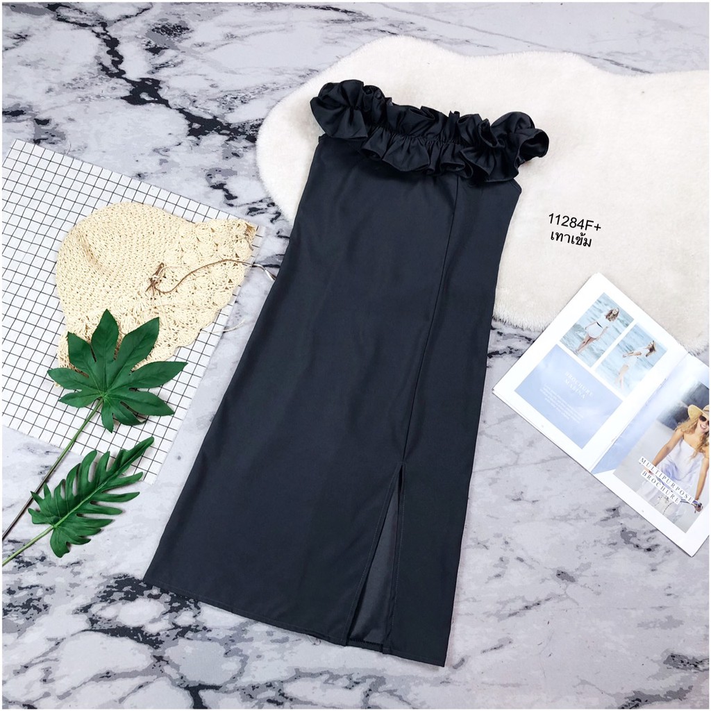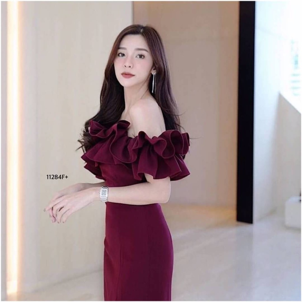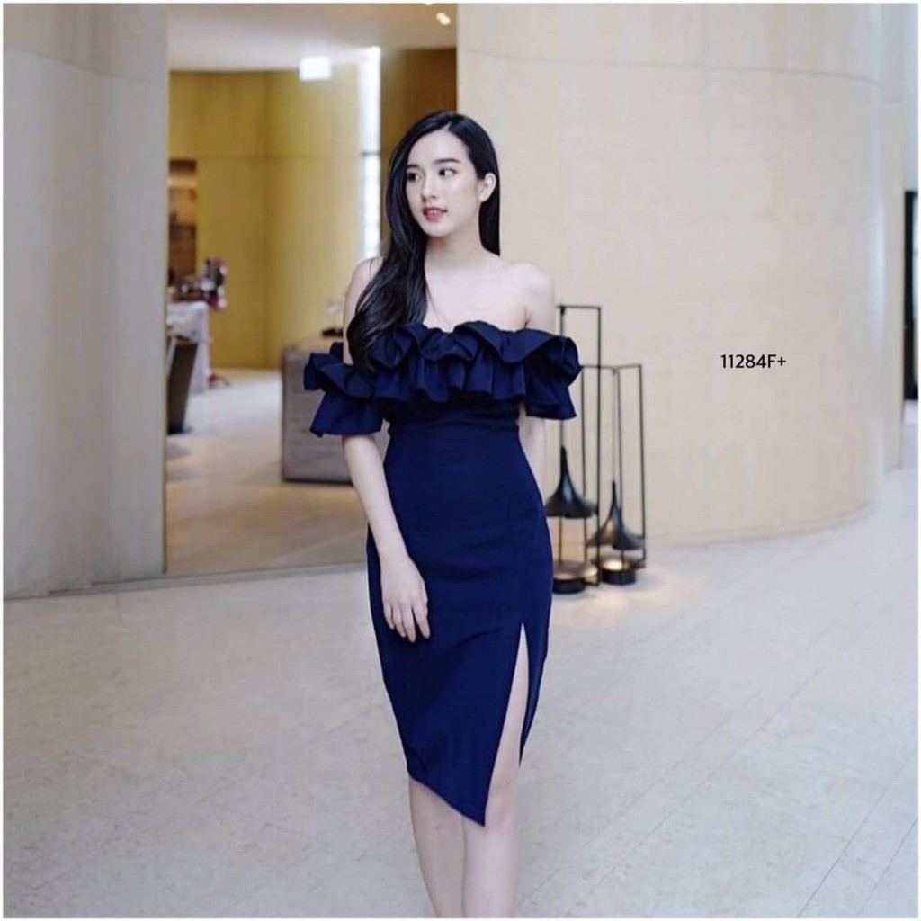 TW 11284 เดรสสั้น ออกงาน ชุดงานแต่ง เดรสปาดไหล่ (ฟรีไซส์ M อก 32-34 เอว 25-30 สพ33-36)