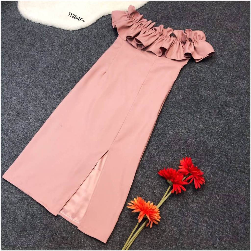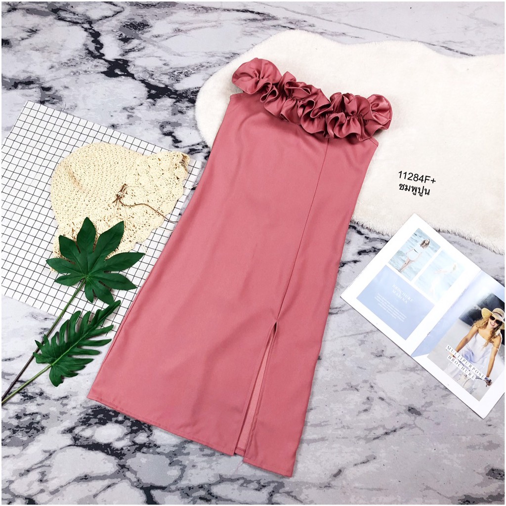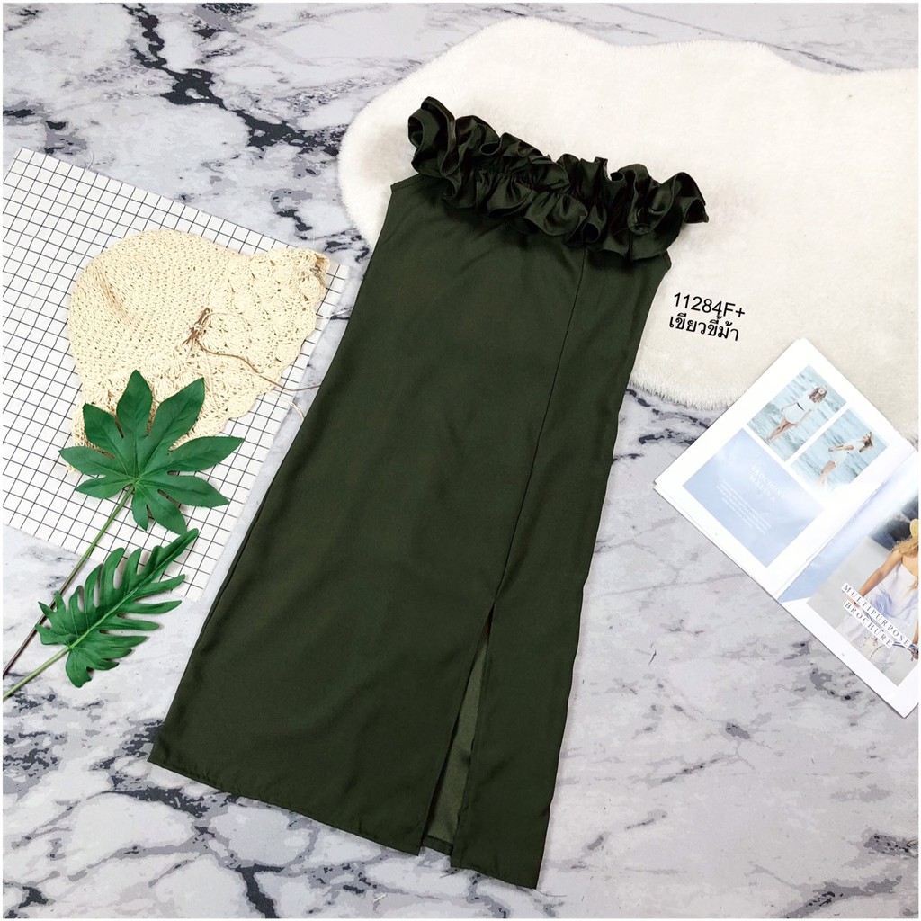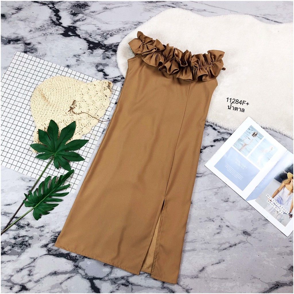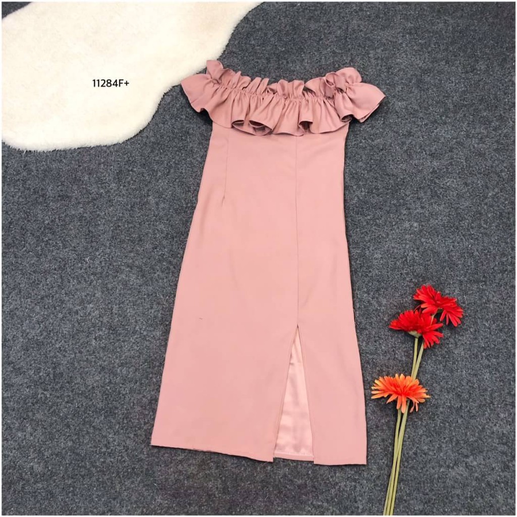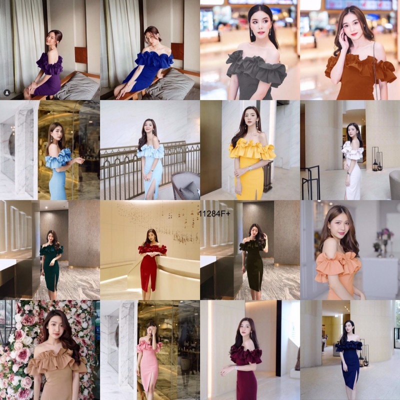 TW 11284 เดรสสั้น ออกงาน ชุดงานแต่ง เดรสปาดไหล่ (ฟรีไซส์ M อก 32-34 เอว 25-30 สพ33-36)