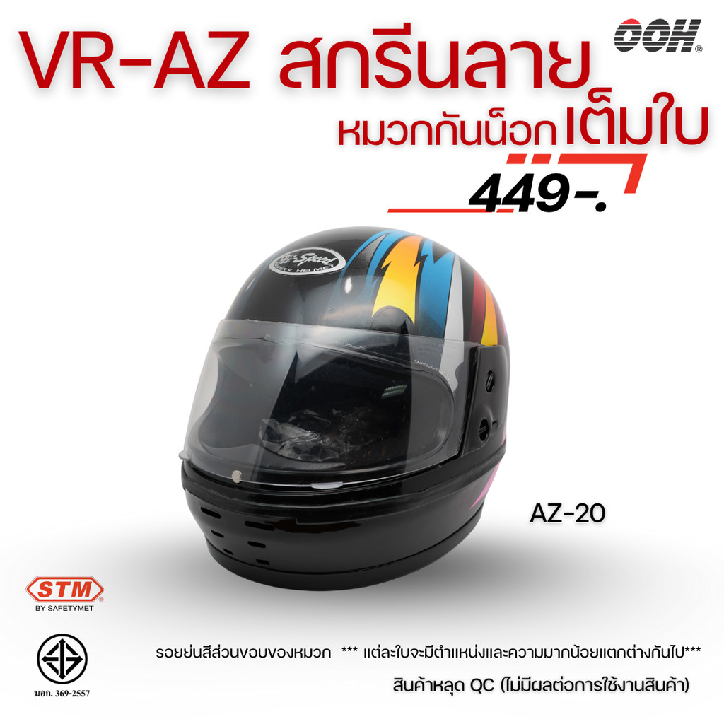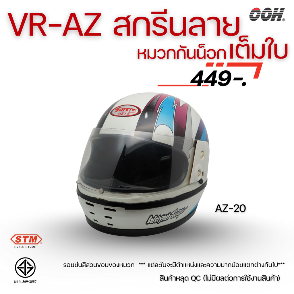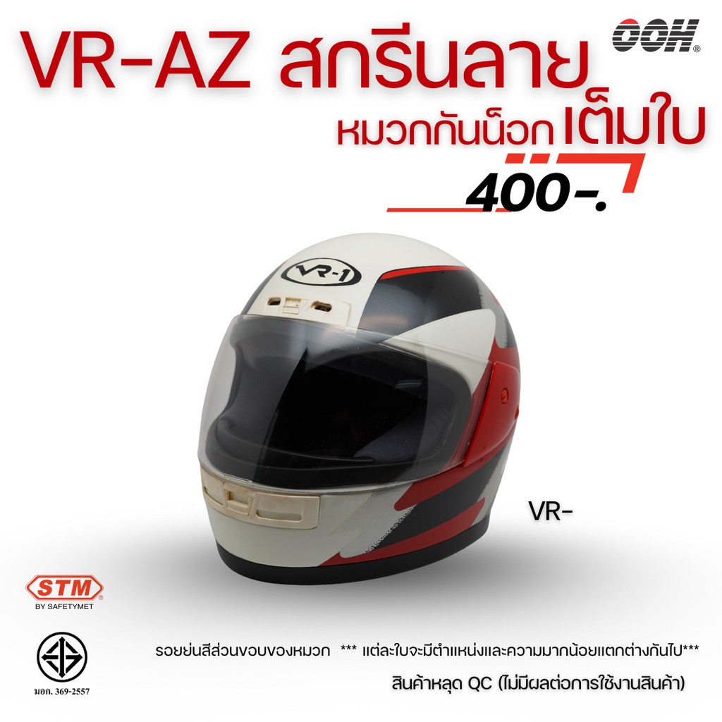(ลดราคาพิเศษ) หมวกกันน็อกสกรีนลาย VR / AZ เต็มใบ (ตำหนิลายสกรีน) (“Imperfect stickers”)