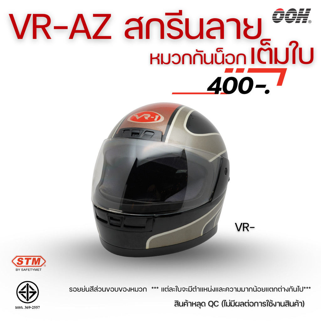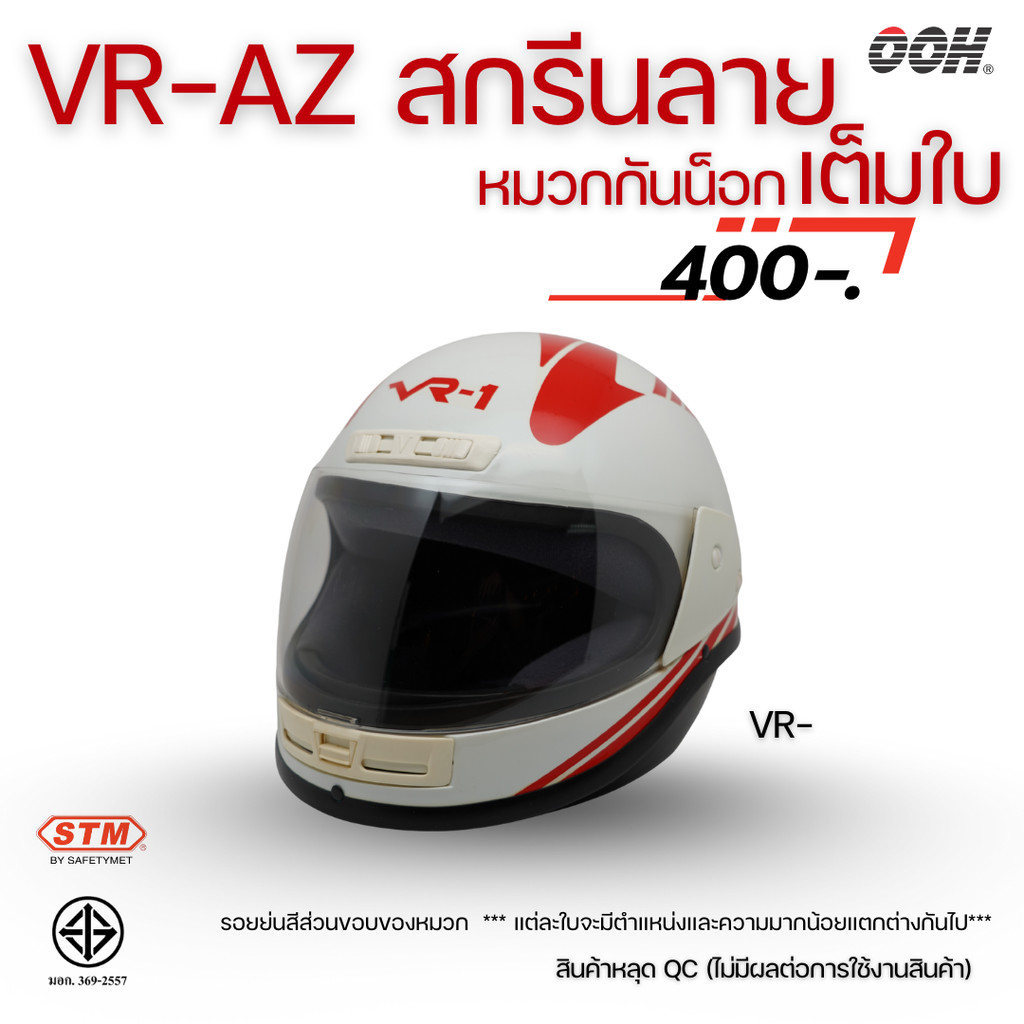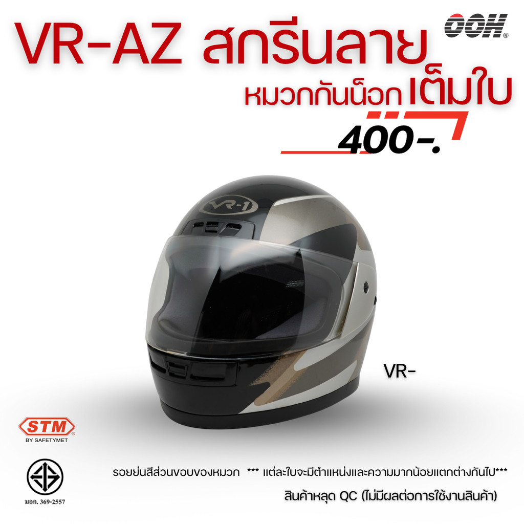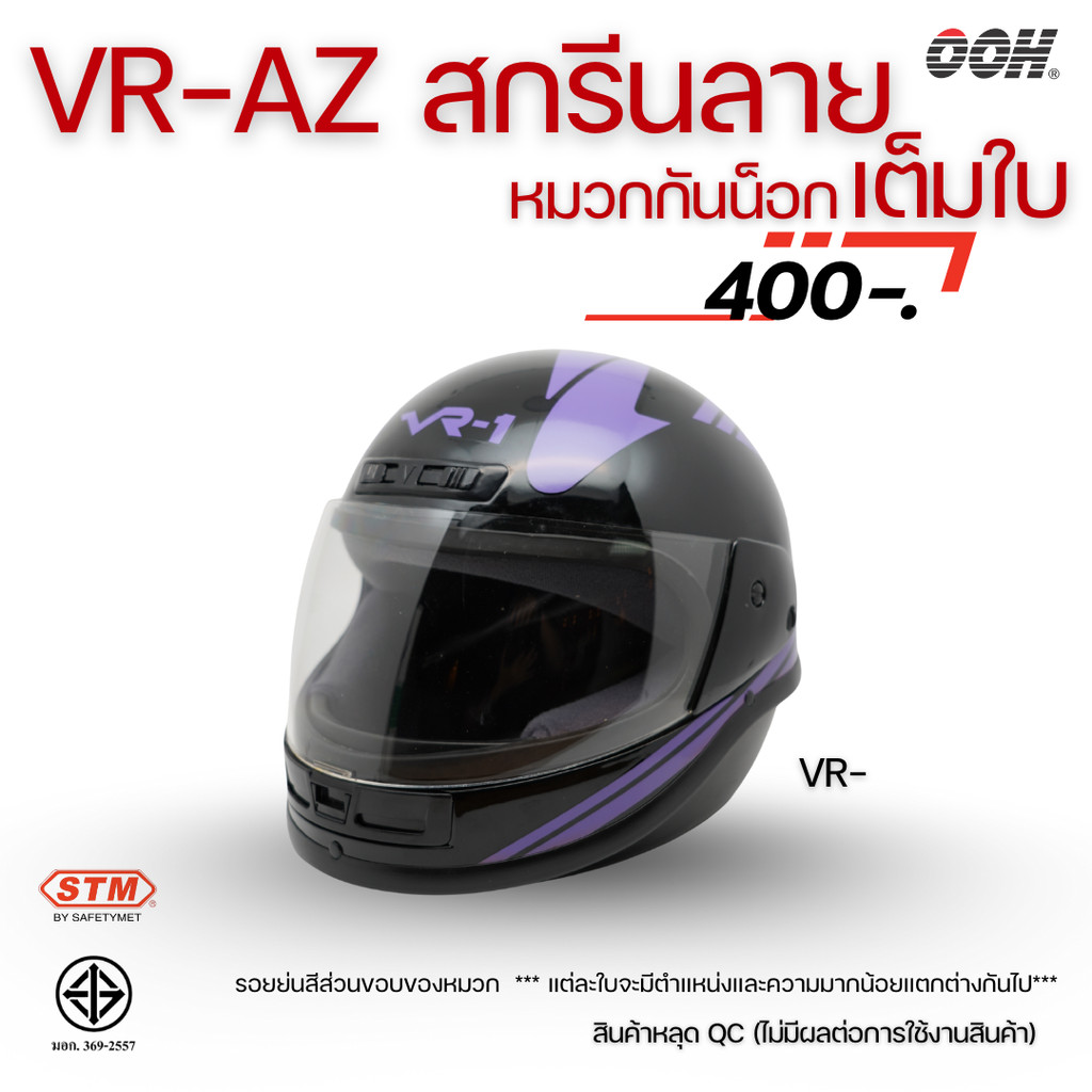 (ลดราคาพิเศษ) หมวกกันน็อกสกรีนลาย VR / AZ เต็มใบ (ตำหนิลายสกรีน) (“Imperfect stickers”)