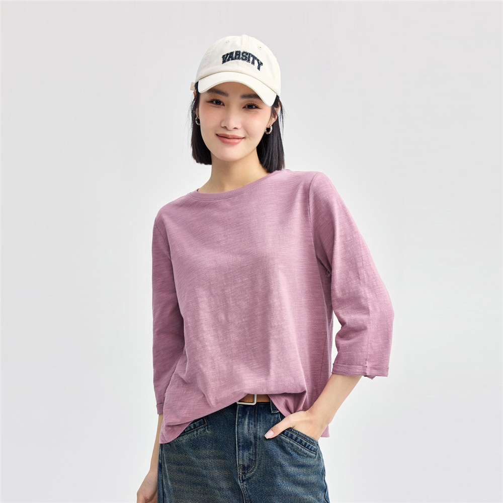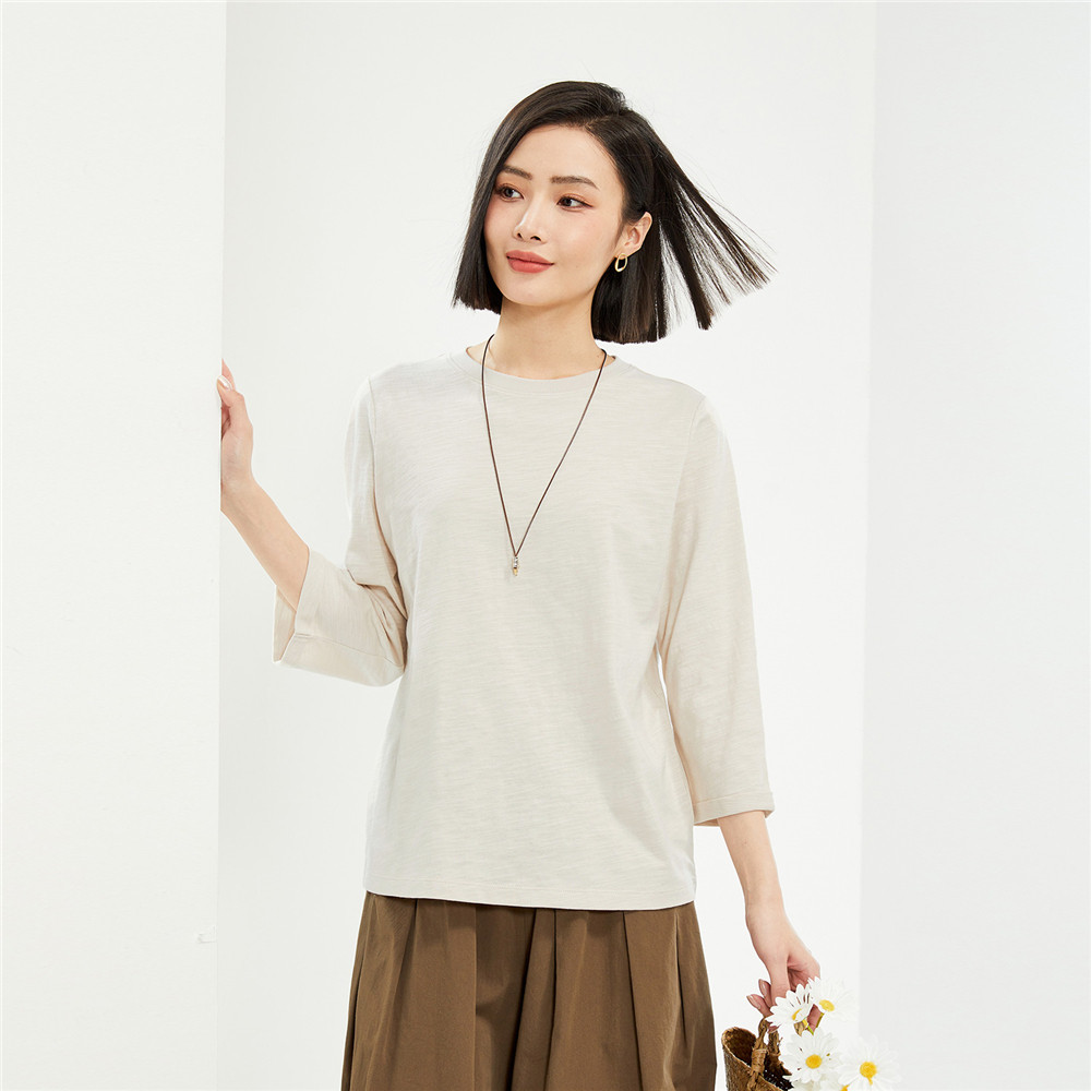 GIORDANO WOMEN Slub cotton 3/4 sleeve crewneck tee 05325412