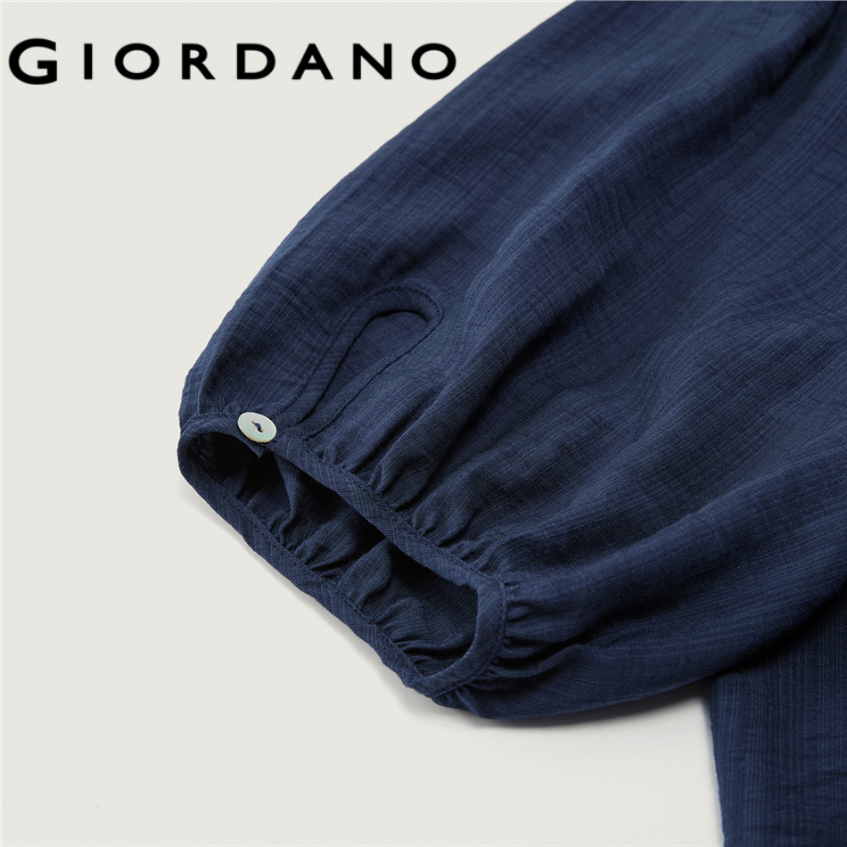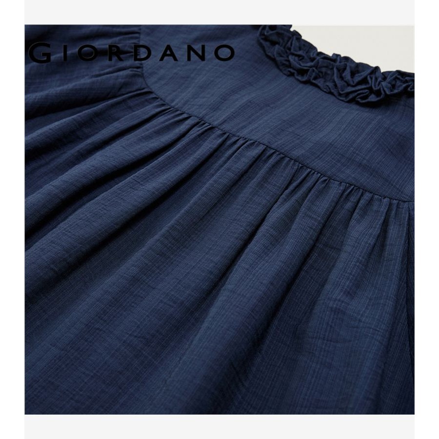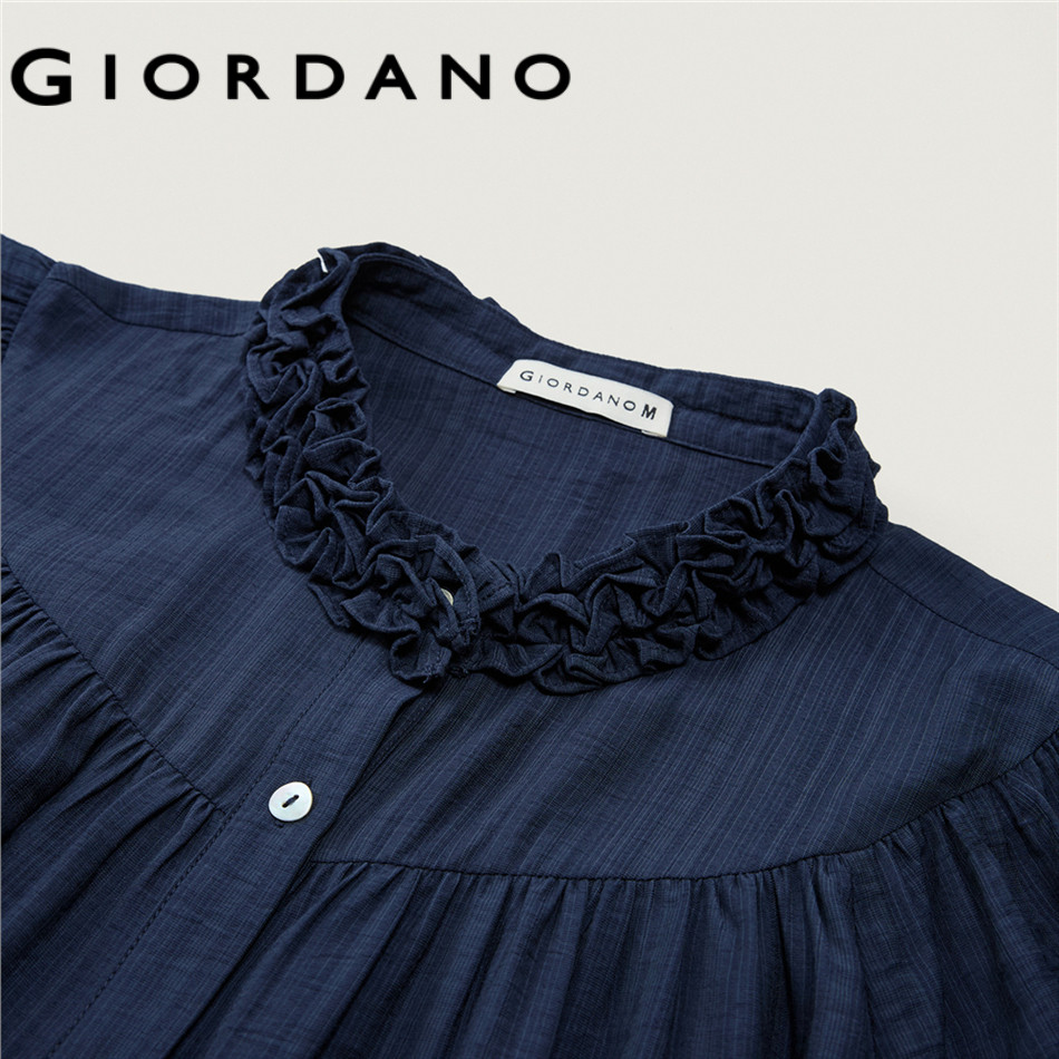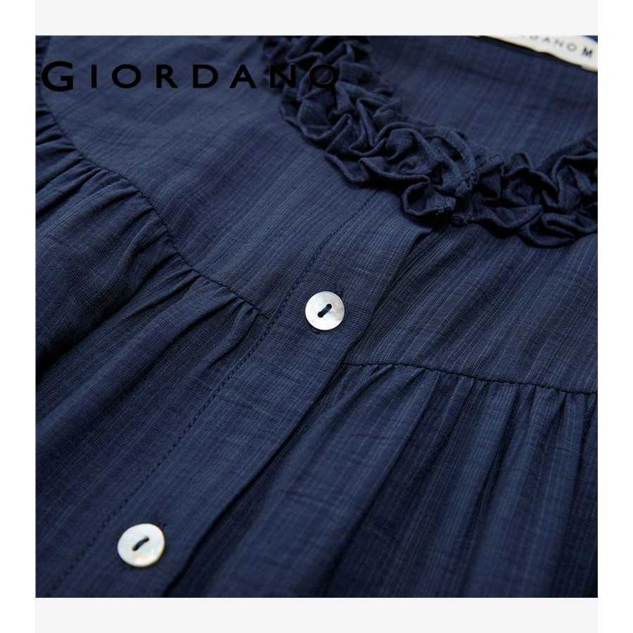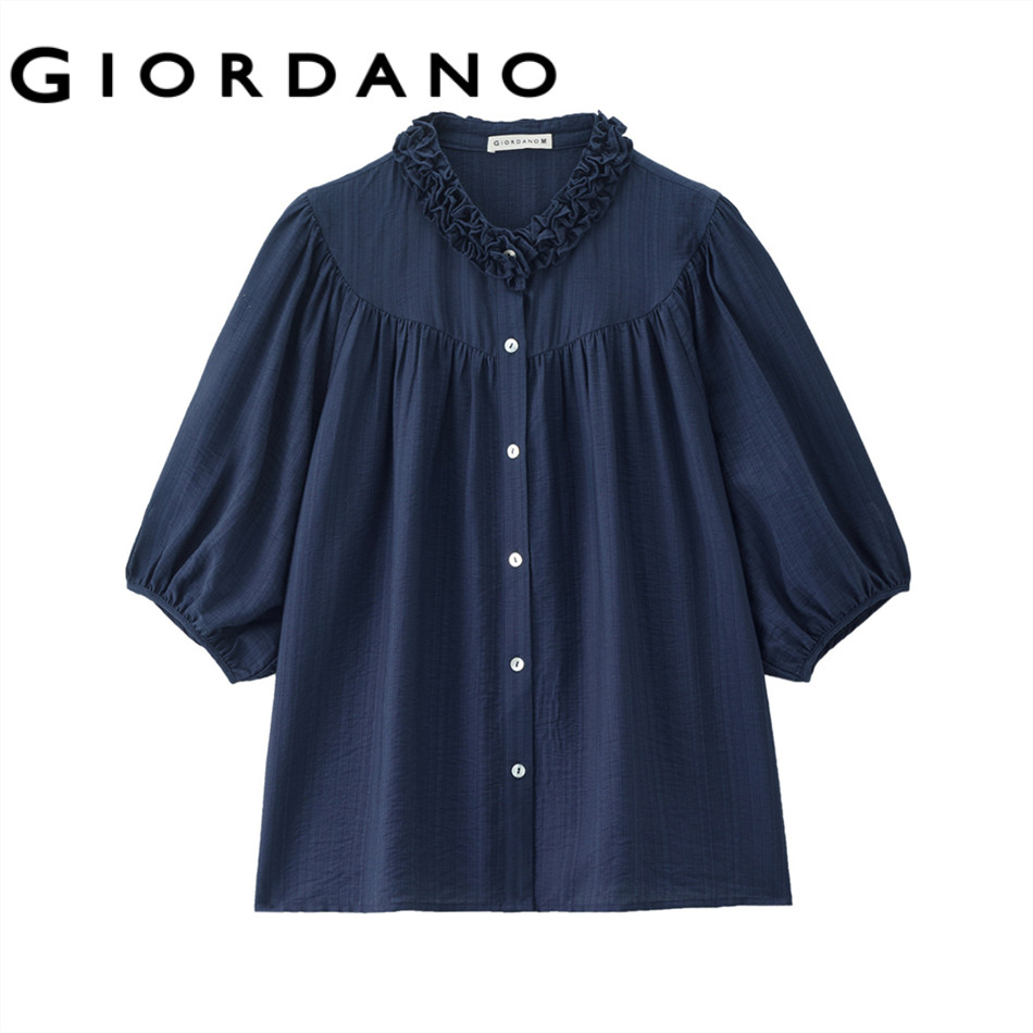 GIORDANO WOMEN Ruffle mandarin collar elbow length sleeve blouse 18345216