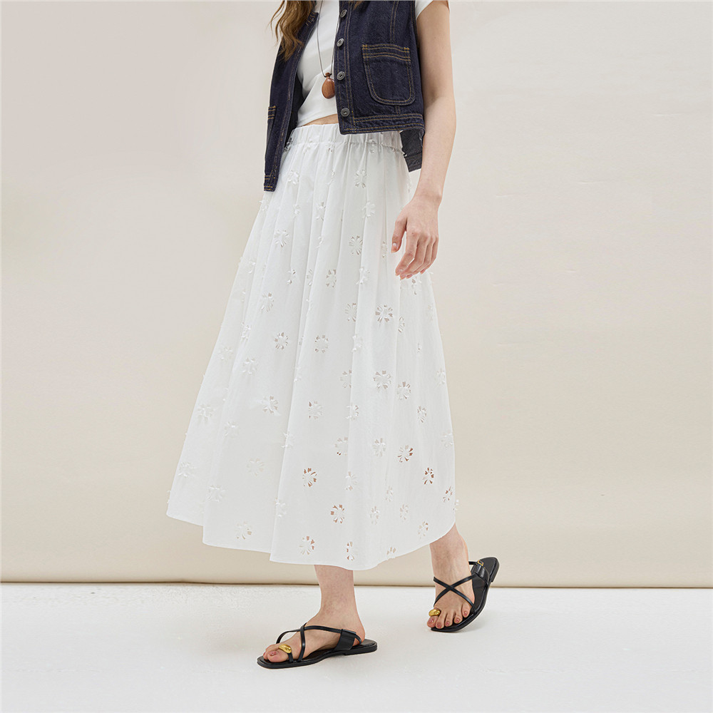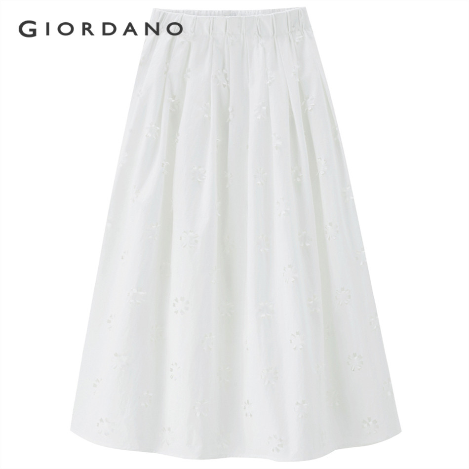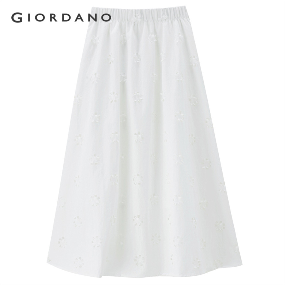 GIORDANO WOMEN Flower hollow elastic waist long skirt 18465211