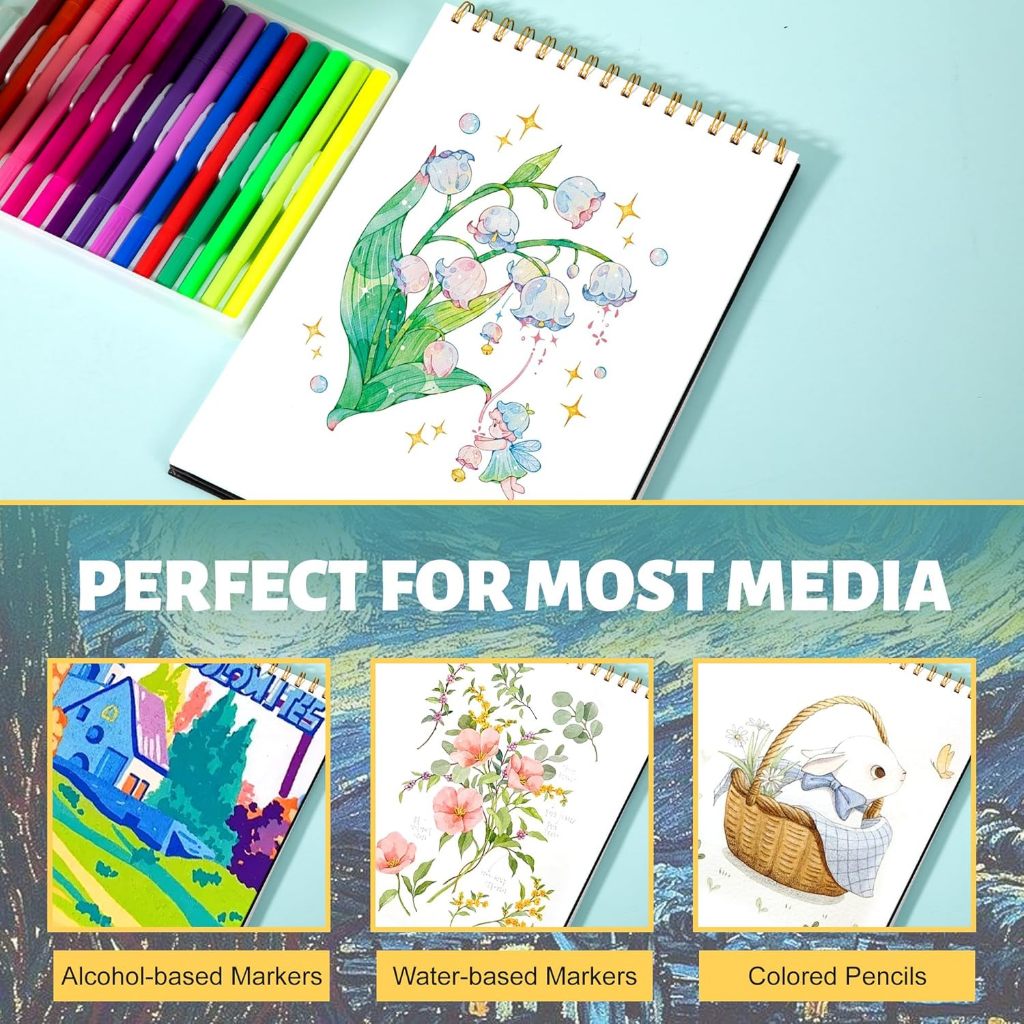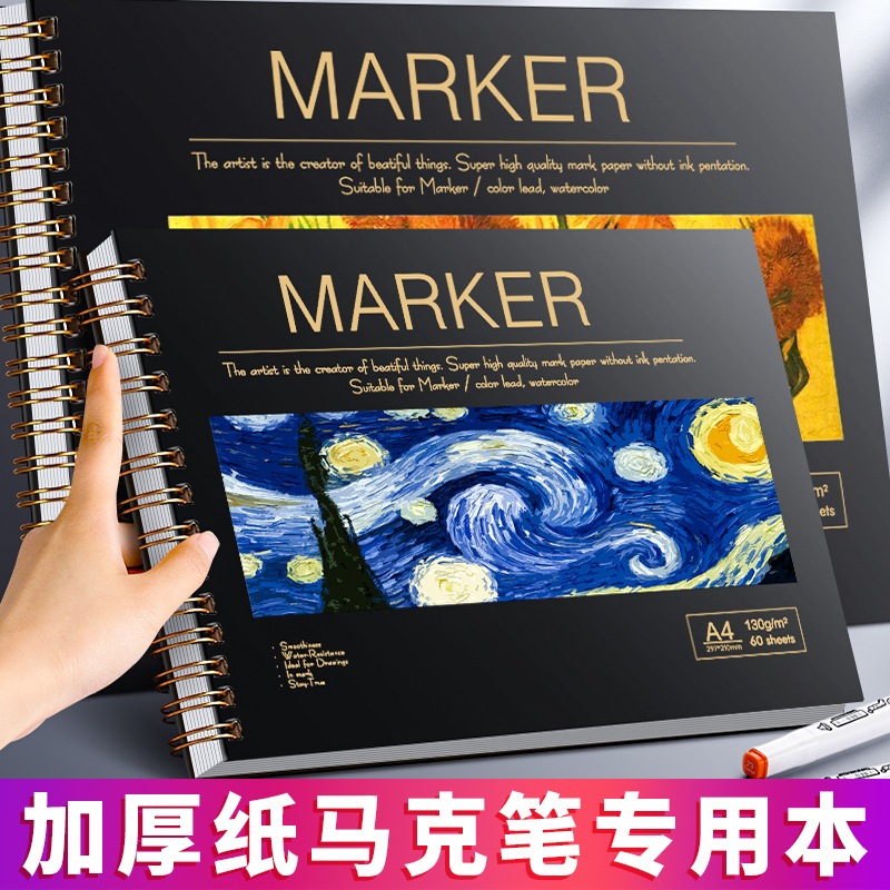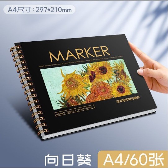 Mixed Media Sketch A4/8K Marker Paper Pad หนา 130GSM Art Sketchbook ขนาดใหญ่วาด Pad Smooth กระดาษ 60 แผ่นปกแข็ง Sketch Pad เครื่องหมายแอลกอฮอล์สําหรับเด็กผู้ใหญ่