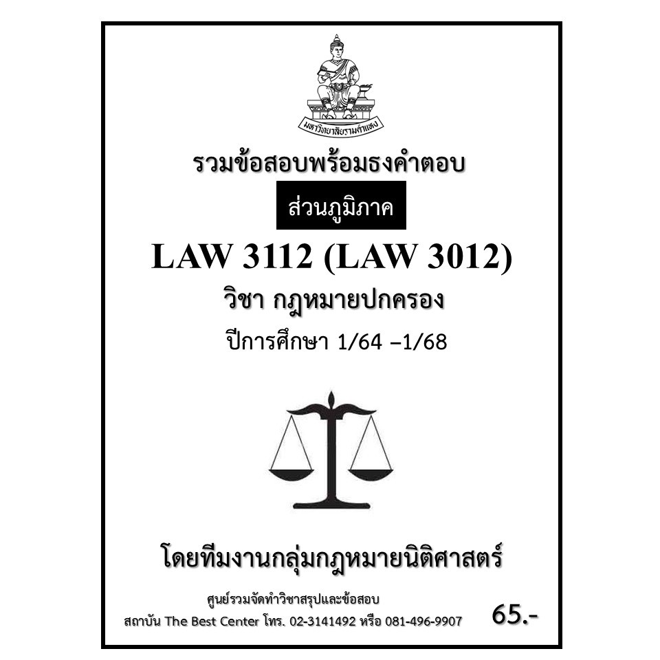 ส่วนภูมิภาค ธงคำตอบ LAW3112 (LAW3012) กฎหมายปกครอง ภาค 1/64-1/68