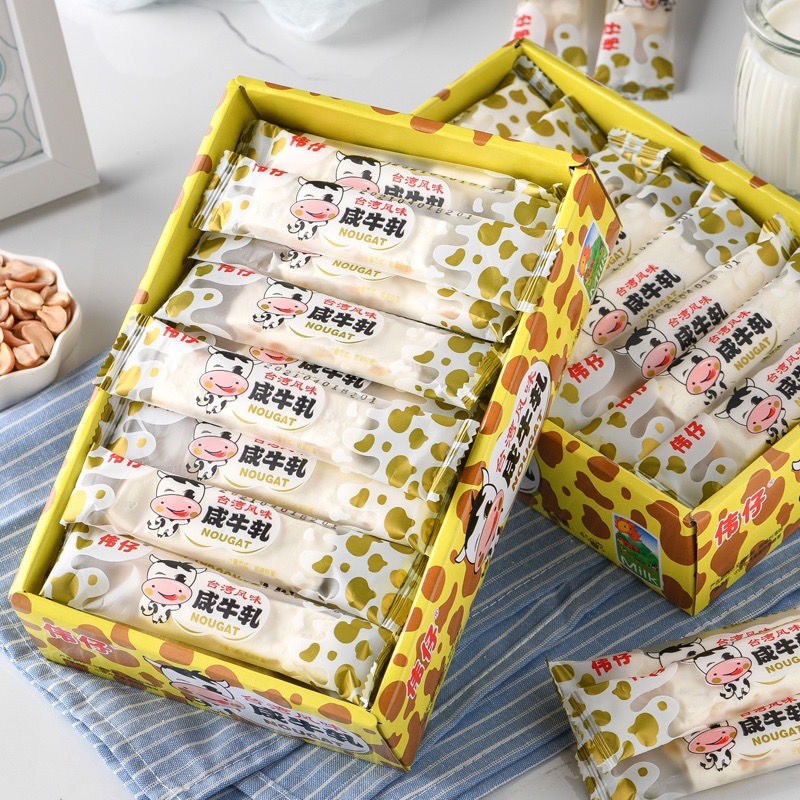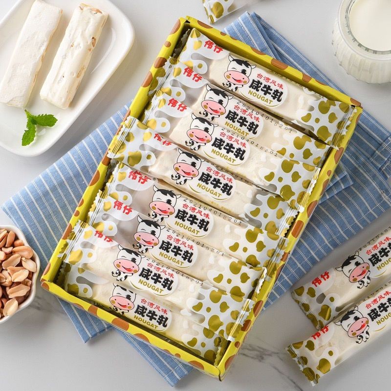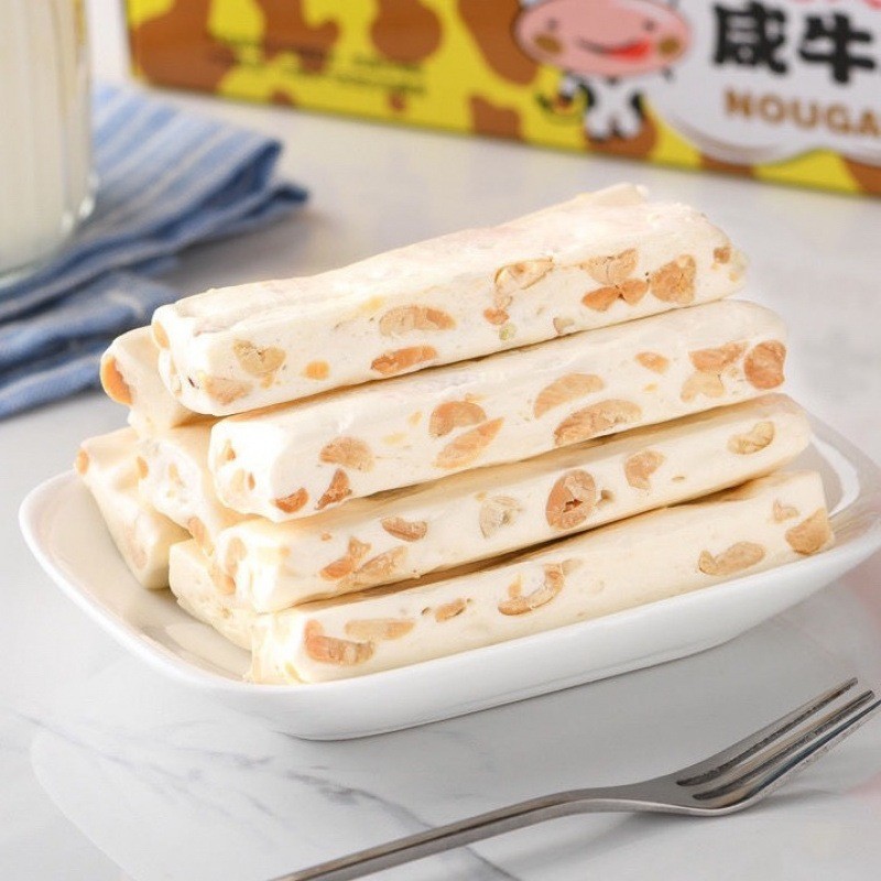 ขนมนูกัตนมรสถั่ว นูกัตยกกล่อง ขนาด 378กรัม ลูกอมหนึบ ขนมตังเมใต้หวัน หอม หวาน เคี้ยวหนึบ อร่อย