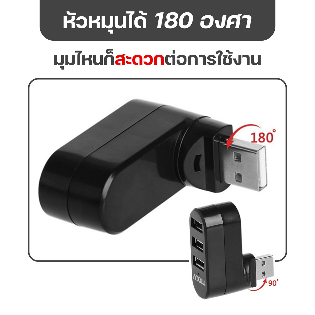 [47บ. ส่งด่วน] Moov HUB02 USB 3 Port ตัวเพิ่มช่อง hub พอร์ต ฮับ OTG PC Laptop USB to USB 2.0 x 3 หัวหมุนได้