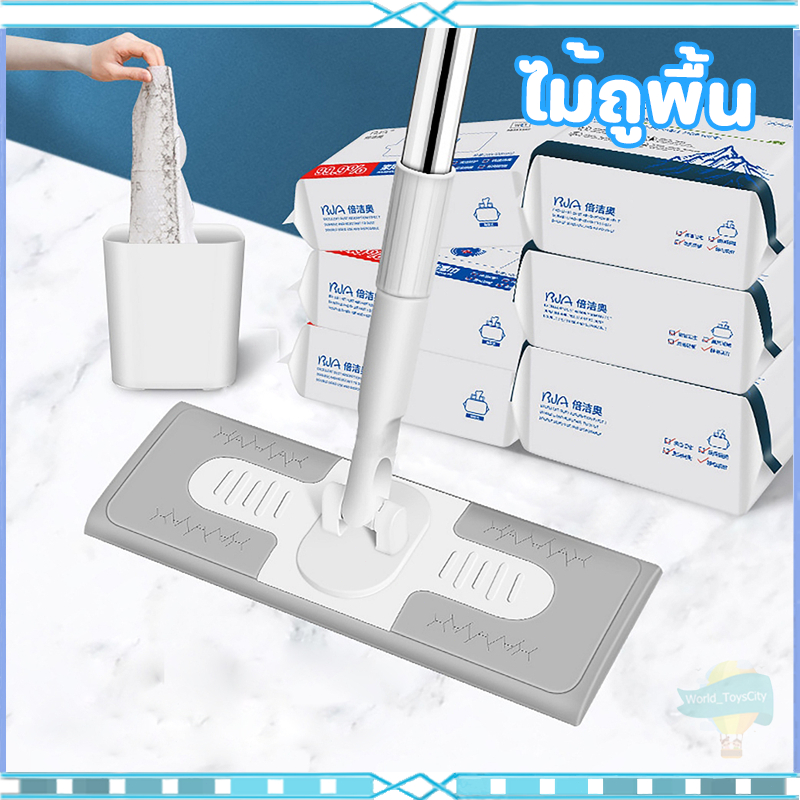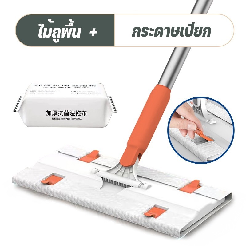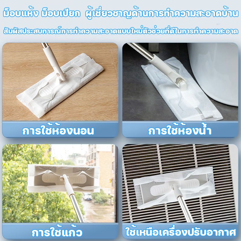 ไม้ถูพื้น ใช้แล้วทิ้ง ไม้ม๊อบ กระดาษเปียก กระดาษแห้ง ปรับความสูงได้ ไม้ม็อบดันฝุ่น ผ้าถูพื้นแบบเปียก แบบเเห้ง ผ้ารีฟิลถู