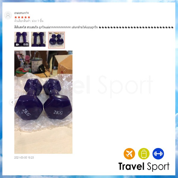 ดัมเบล 2 Kg เหล็กหุ้มยาง >> ราคาต่อ 1 ชิ้น