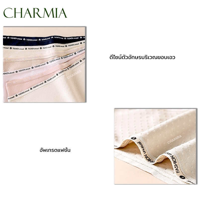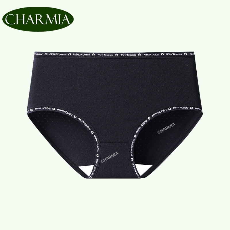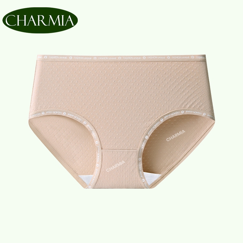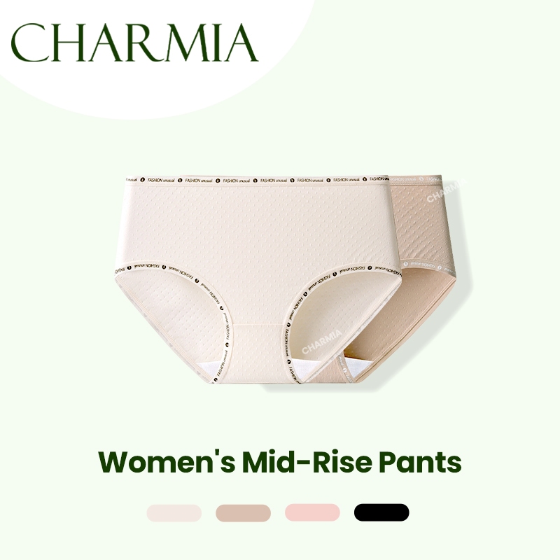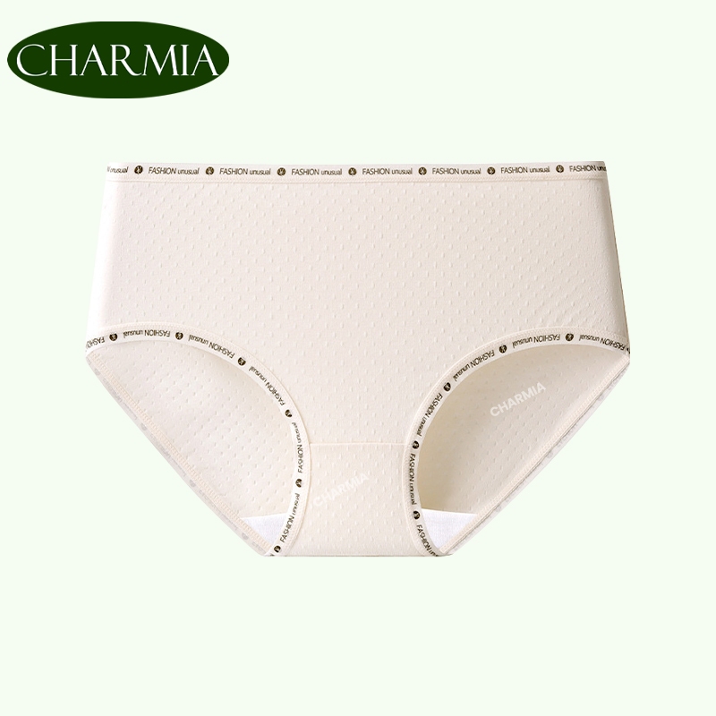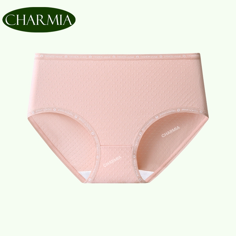 (Thailand Stock)Charmia(3PCS) กางเกงในหญิงเอวกลาง ผ้าฝ้ายแท้ ซับในฆ่าเชื้อ 5A เอวพิมพ์ลาย ไม่บั้นก้น