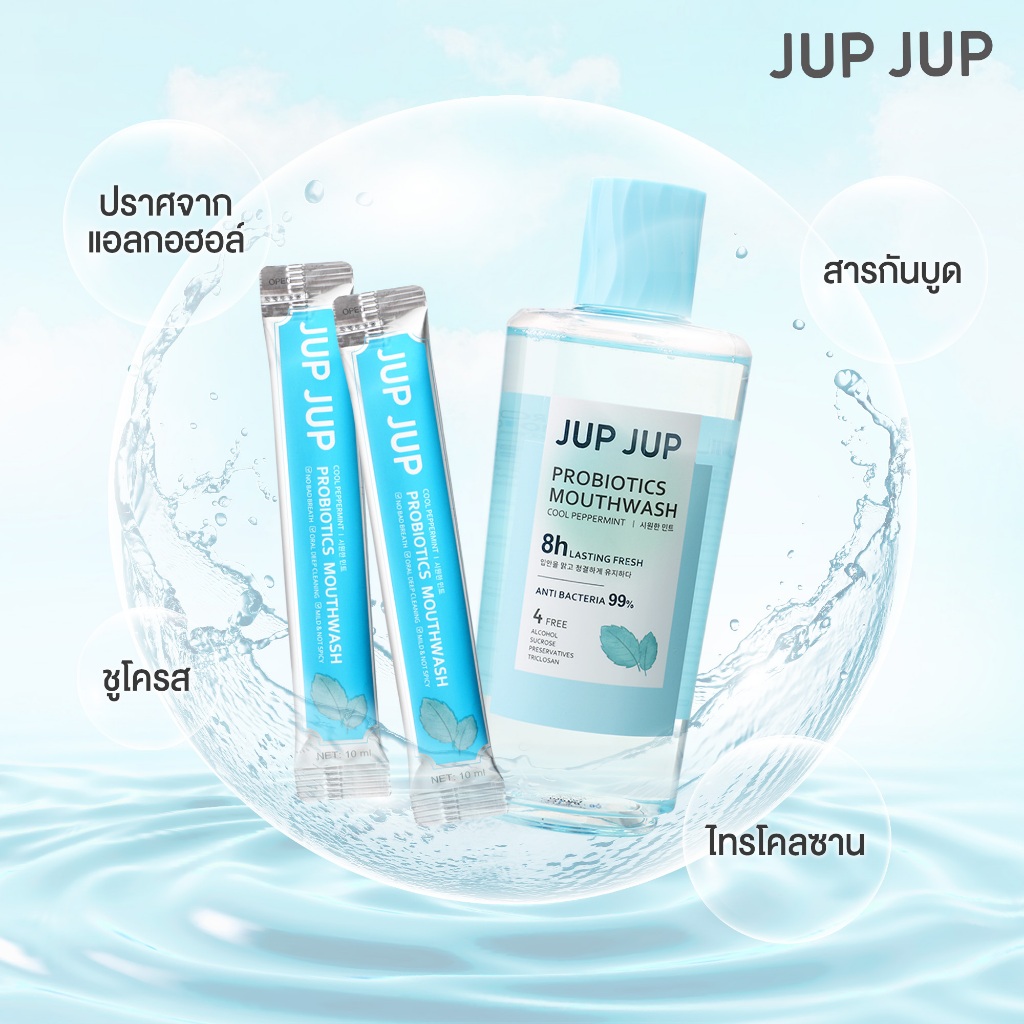 JUP JUP Probiotics Mouthwash[10ml x 10pcs] #Cool Peppermint น้ำยาบ้วนปากแบบซอง สูตรไบโอติก กลิ่นเปปเปอร์มินต์