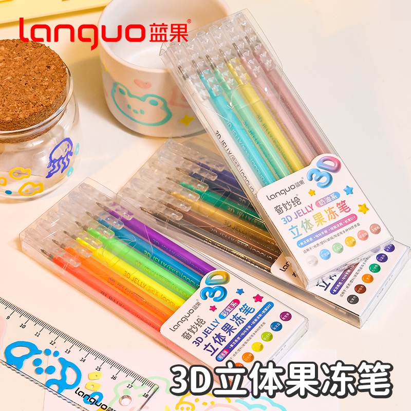 Languo 6 สี 3D กันน้ํา jelly Highlighter DIY Graffiti Marker ปากกา 3D jelly ปากกาสําหรับเล็บ/แก้ว/เซรามิค/ภาพ