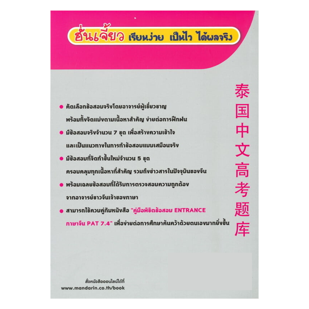 (หนังสือราคา 375 บาท) หนังสือ รวมข้อสอบ ENTRANCE ภาษาจีน PAT 7.4 ฉบับปรับปรุง พิมพ์ครั้งที่ 2