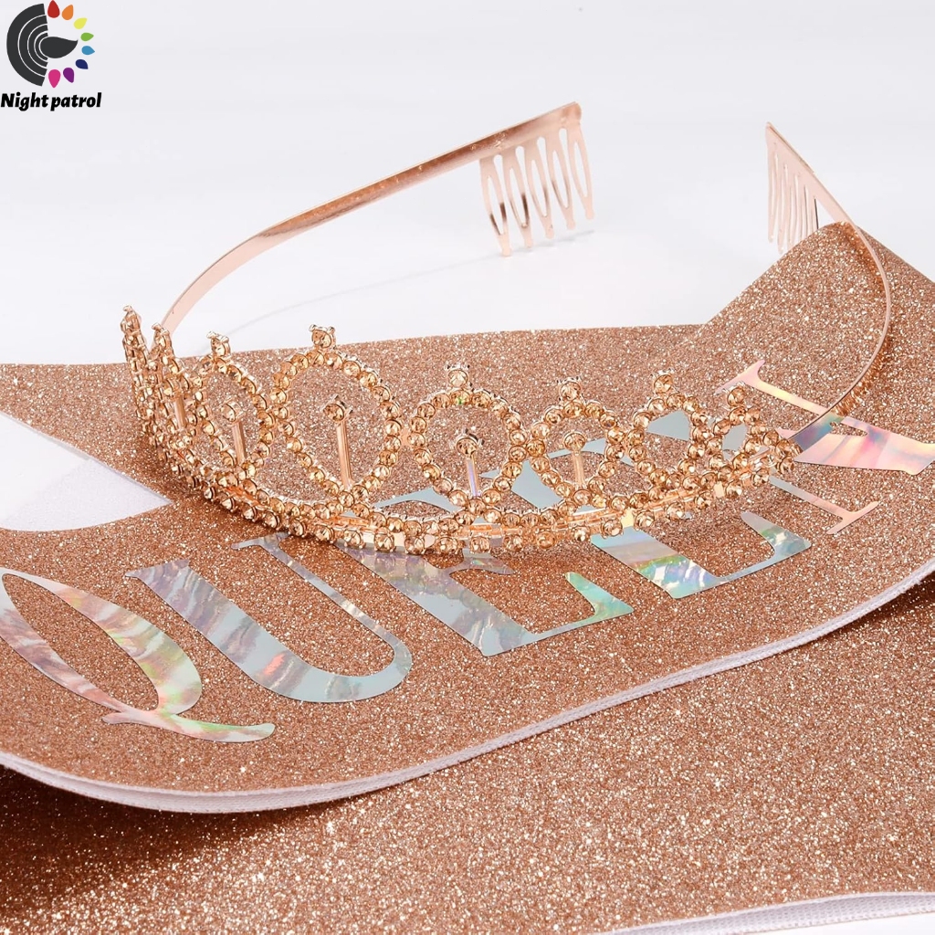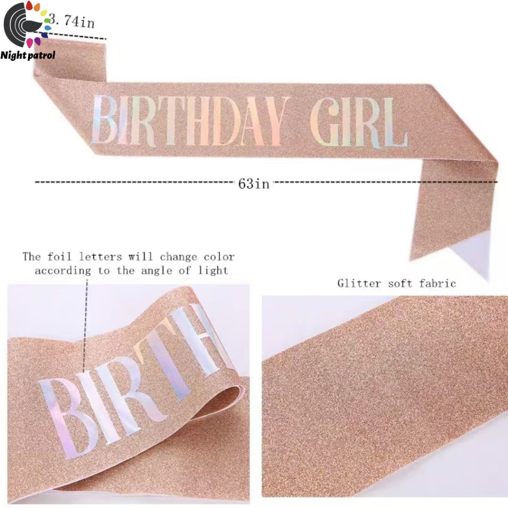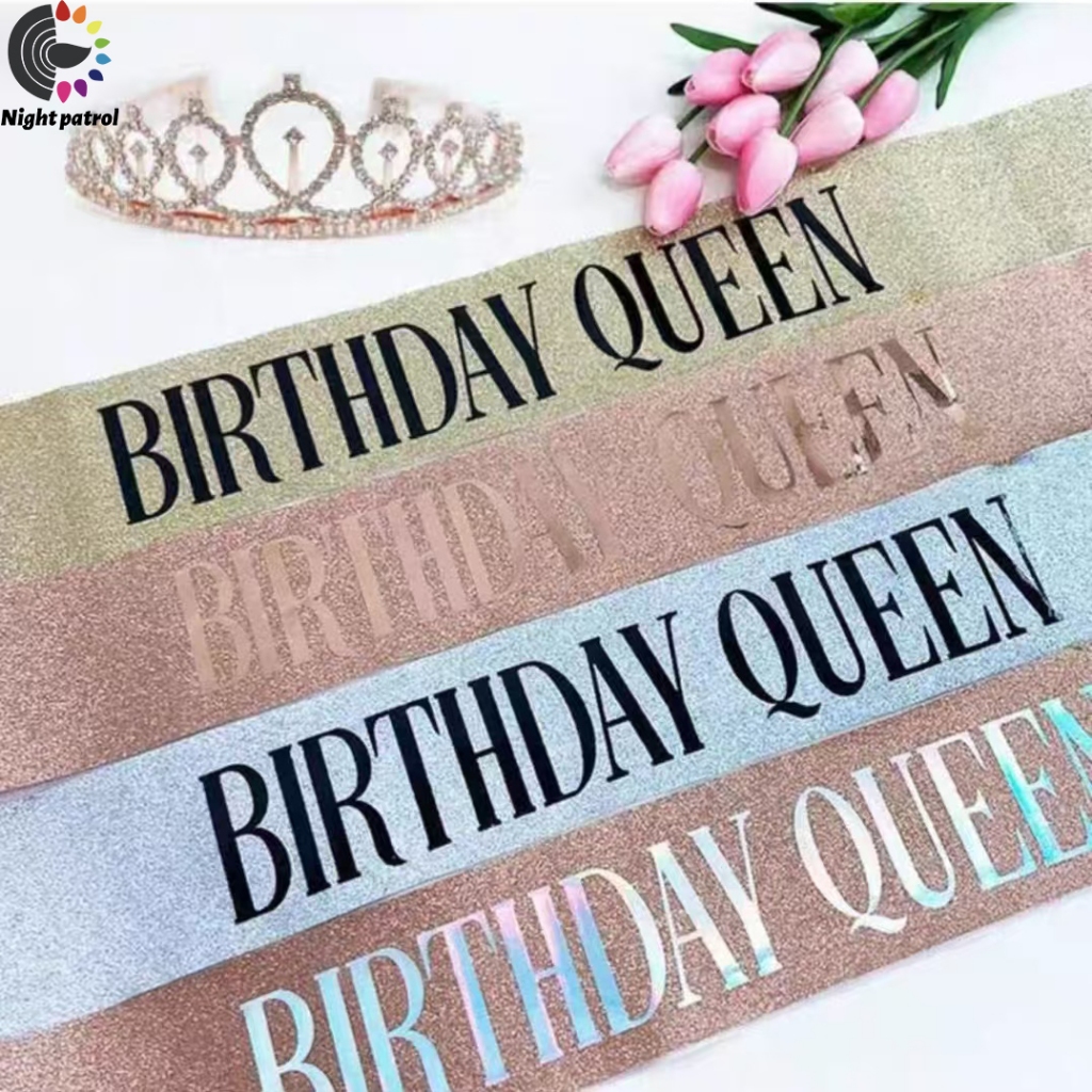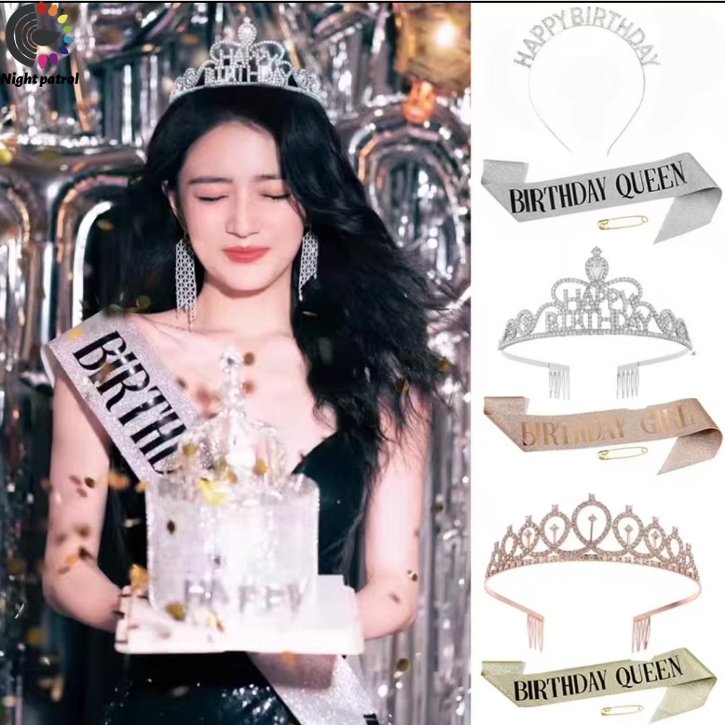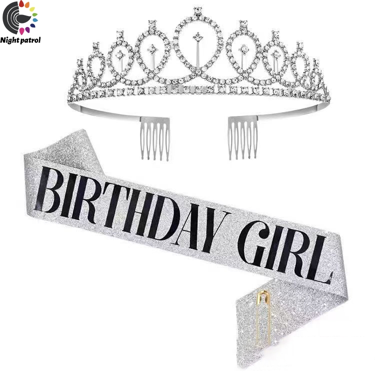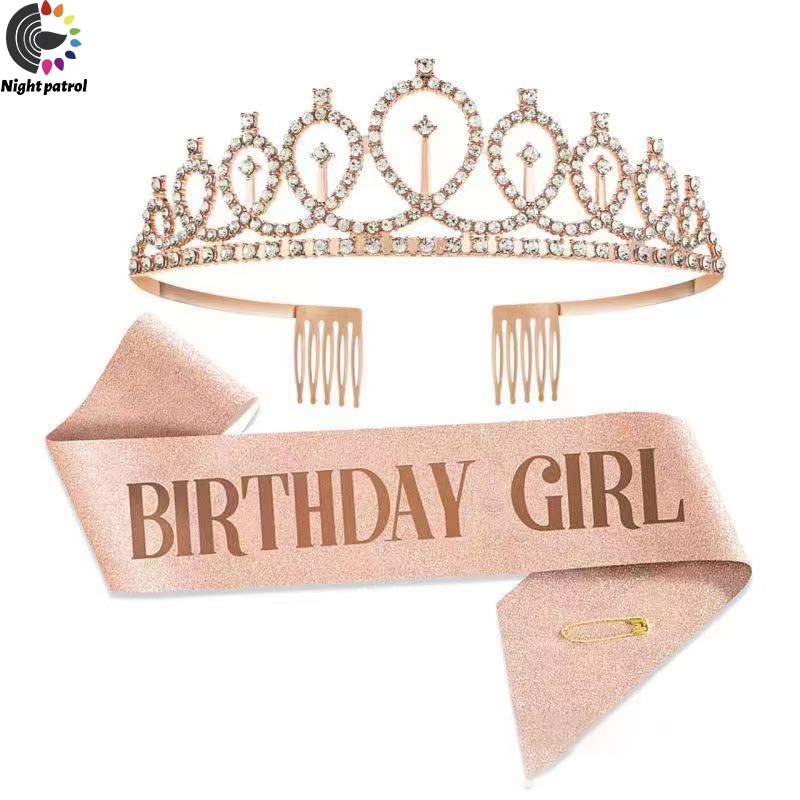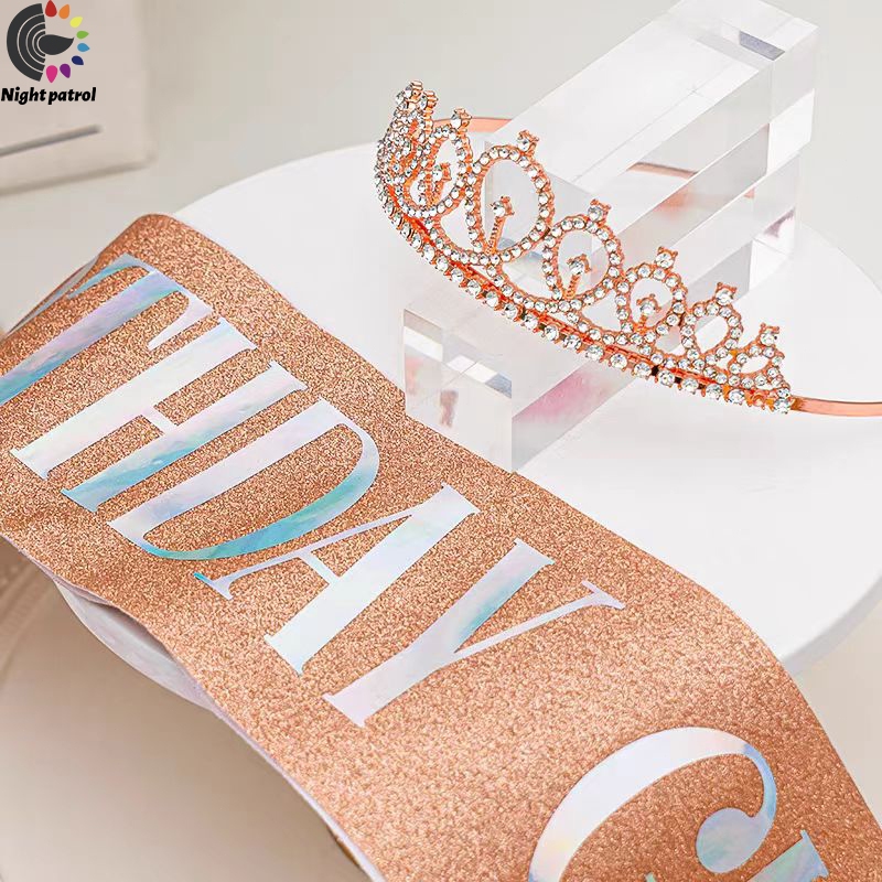 ชุดสายคล้องไหล่ ประดับกลิตเตอร์ Happy Birthday/Gir ลายมงกุฎเจ้าหญิง พร้อมมงกุฎ สําหรับปาร์ตี้วันเกิด