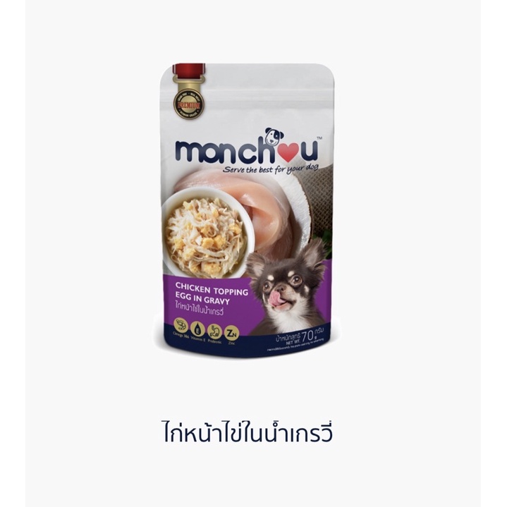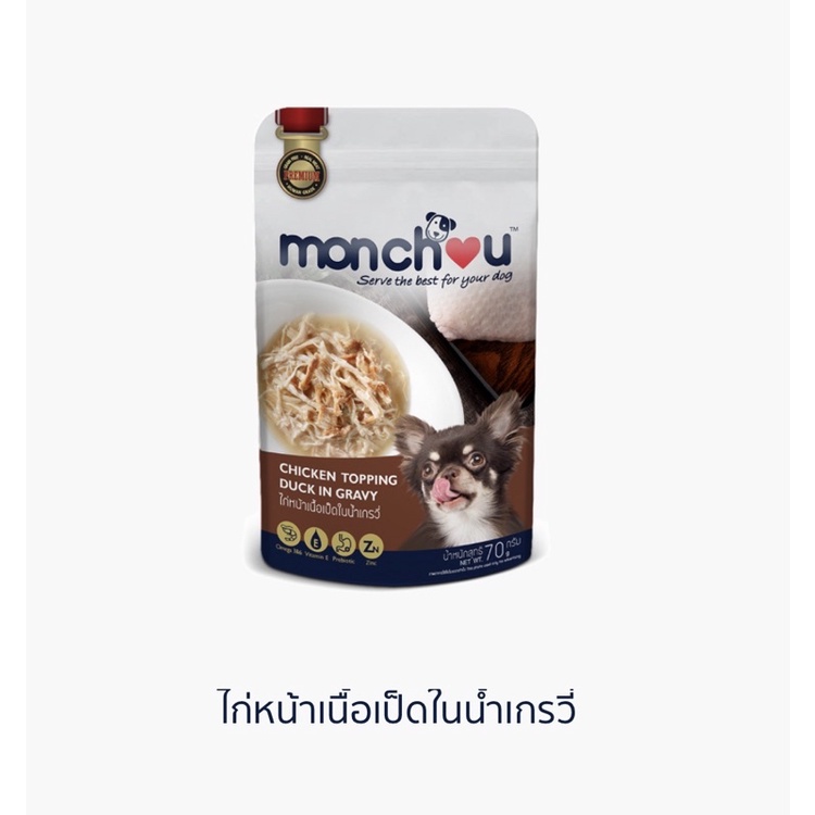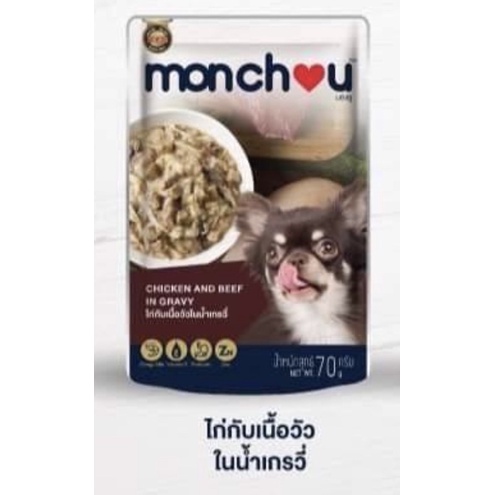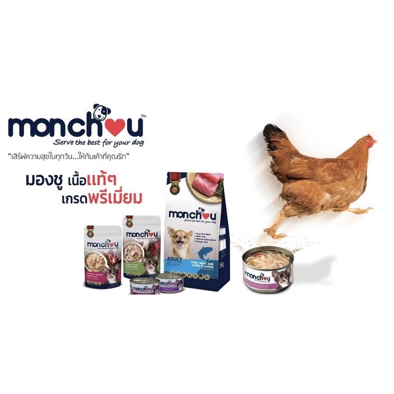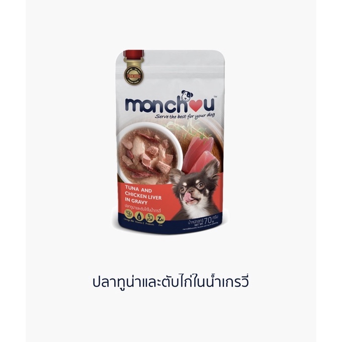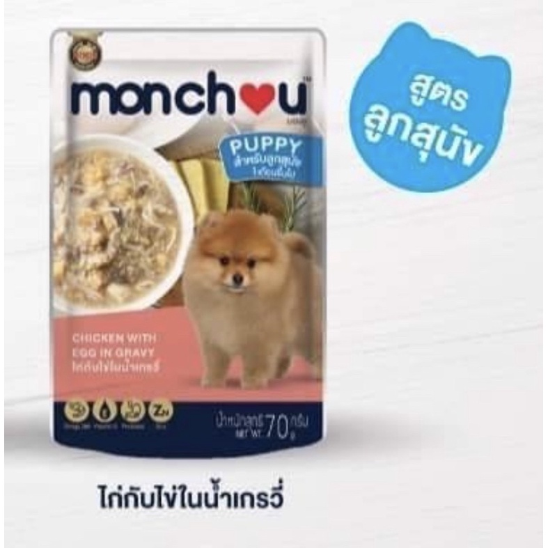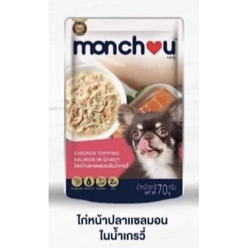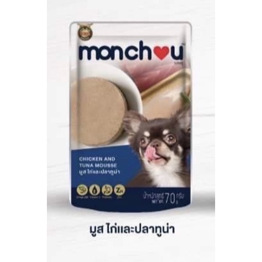 (แบบโหล)Monchou Premium Dog Pouch 😸❤️ มองชู อาหารเปียกเกรดพรีเมี่ยม สำหรับสุนัข บรรจุซอง 70g*12