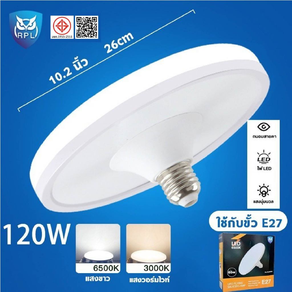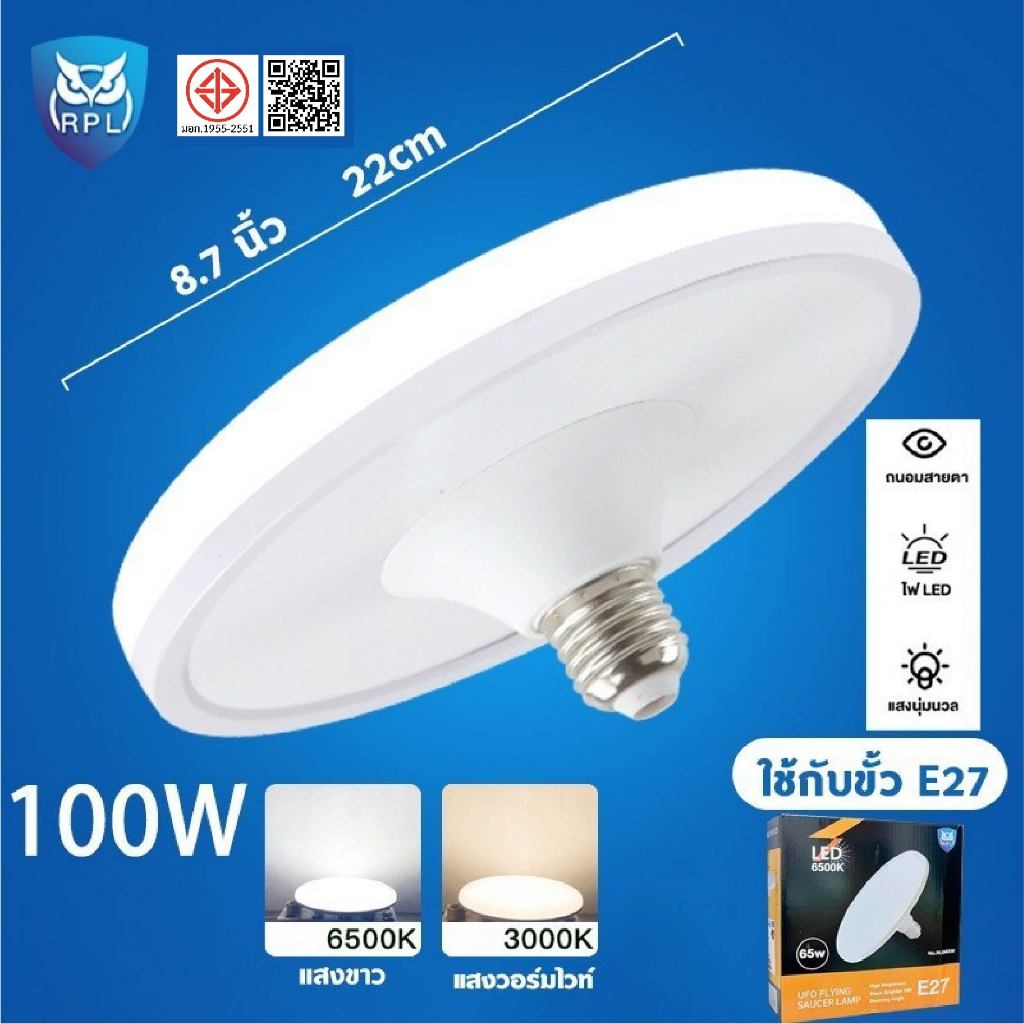 หลอดไฟ LED 100W หลอดไฟจานบิน ไฟเพดาน ไฟ หลอดไฟ UFO หลอดไฟอัจฉริยะ ใช้กับขั้ว E27 สว่าง ทนทาน ไฟแสงสีขาว หลอดไฟกลม COD