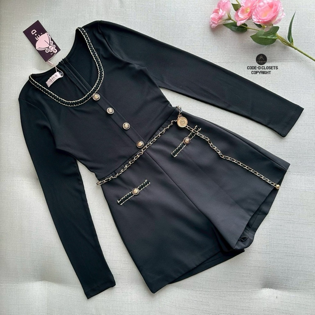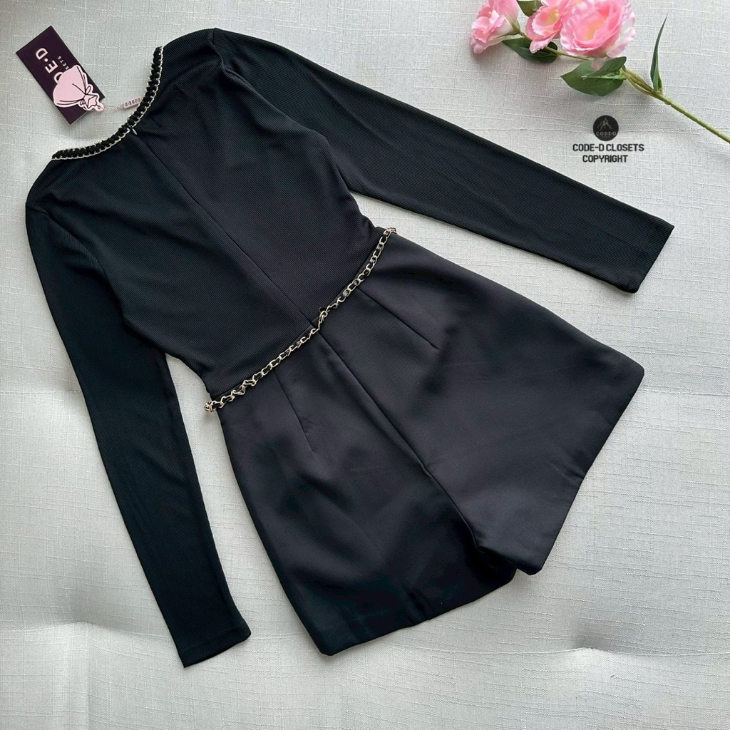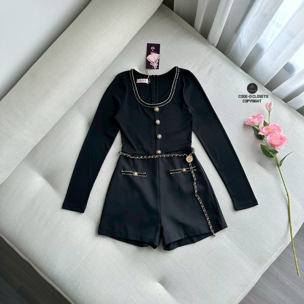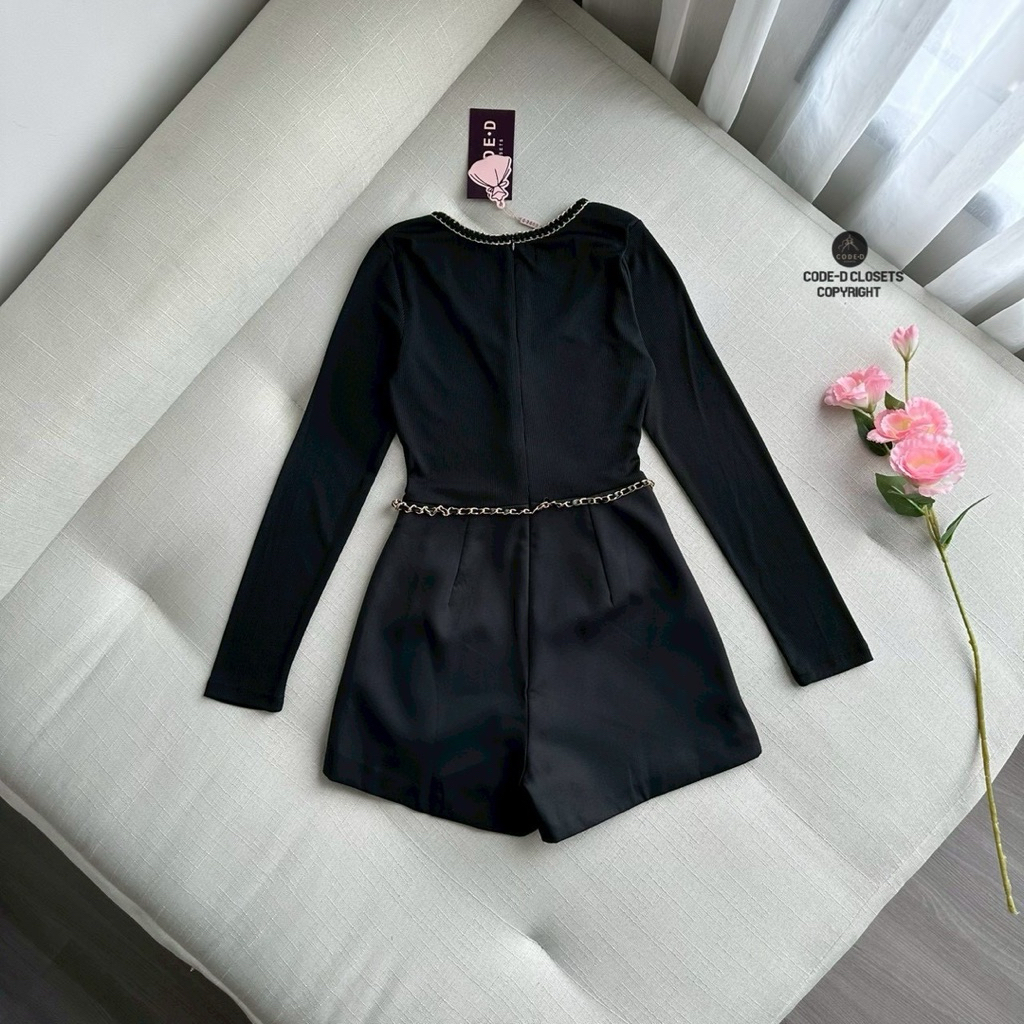 CODE-D (เช็คก่อนสั่ง)จั้มสูทขาสั้นแขนยาวซีทรูสีดำ คอยู ผ้าร่องนิ่มยืด น่ารักมาก(XS SML)